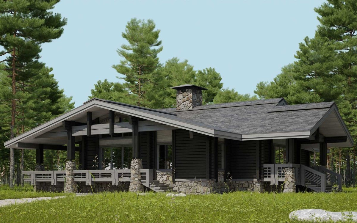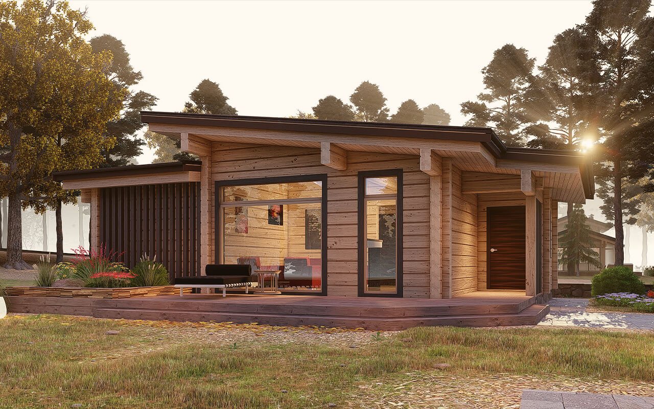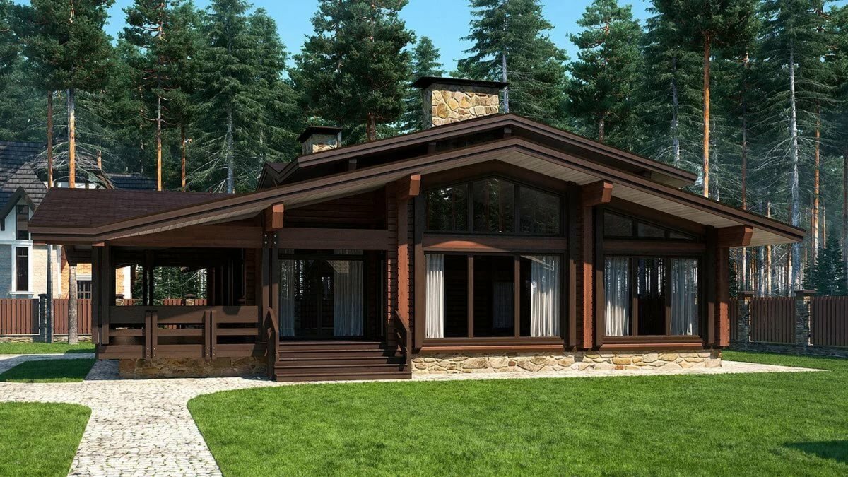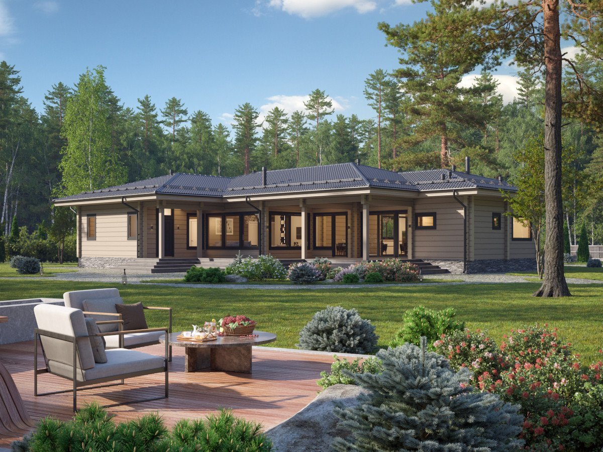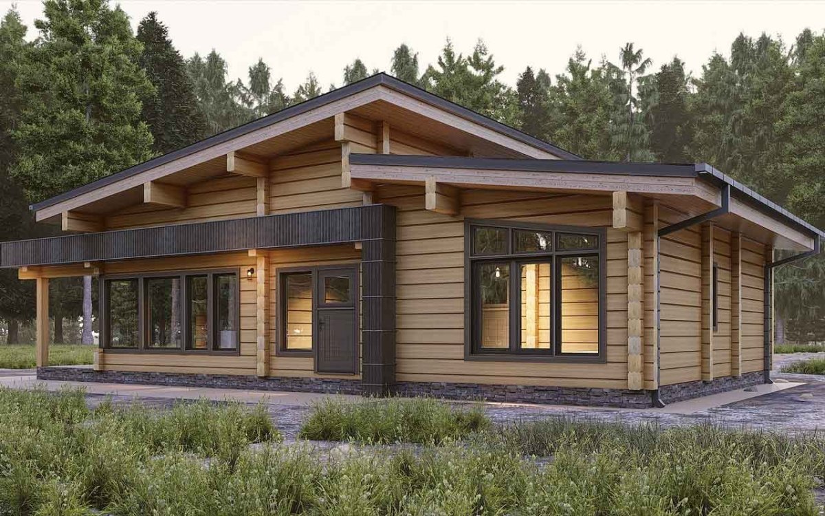 Одноэтажный дом в стиле хайтек из клееного бруса