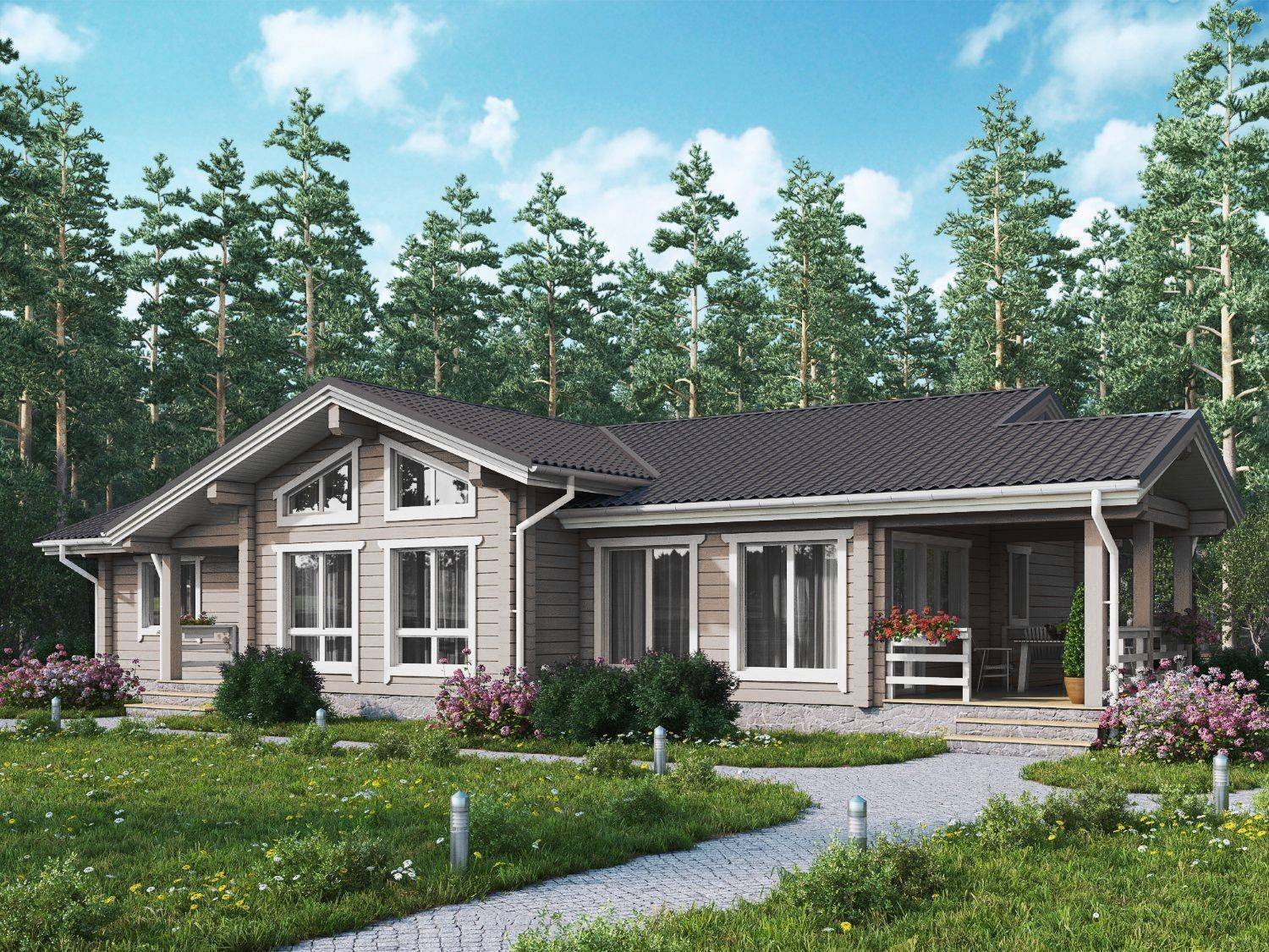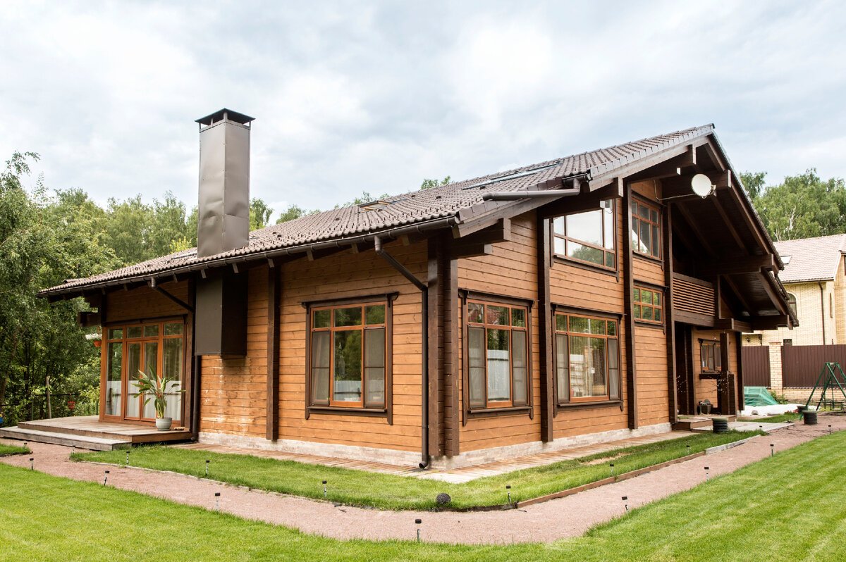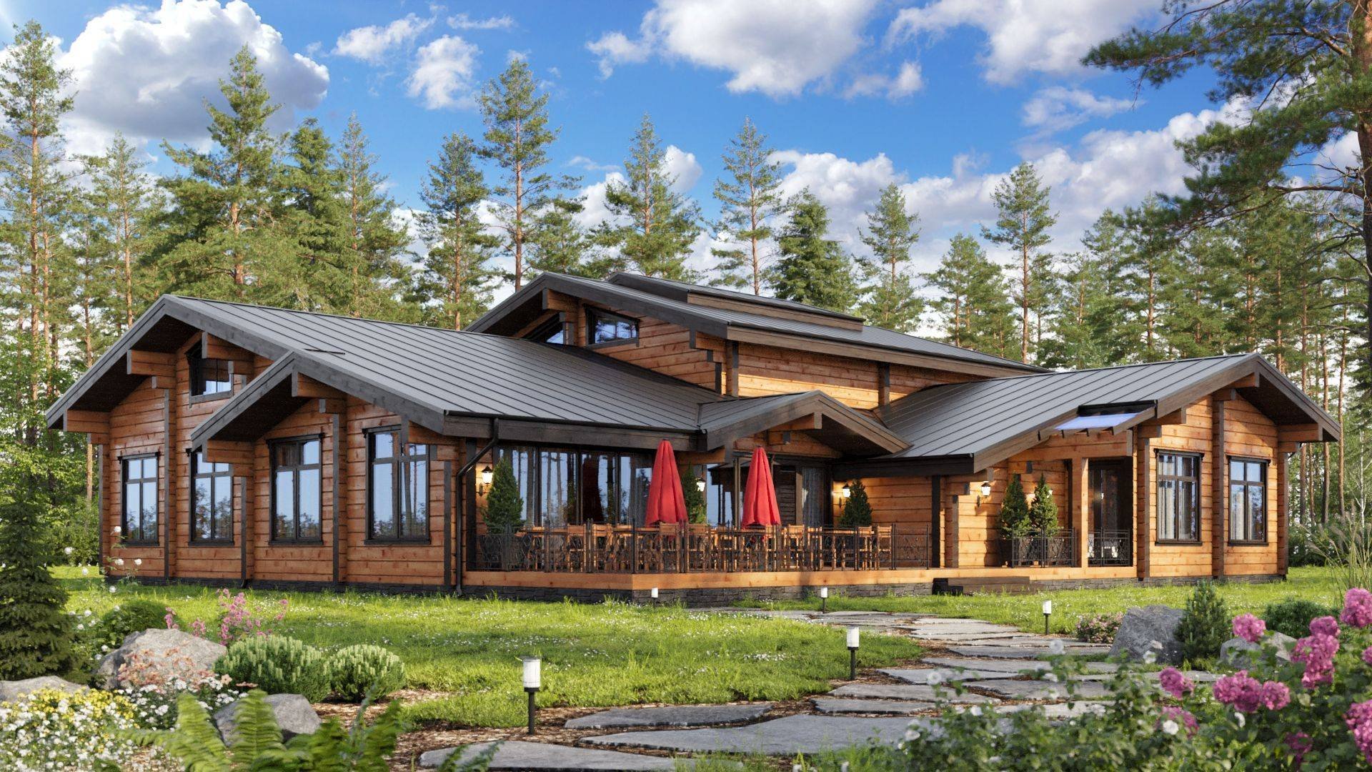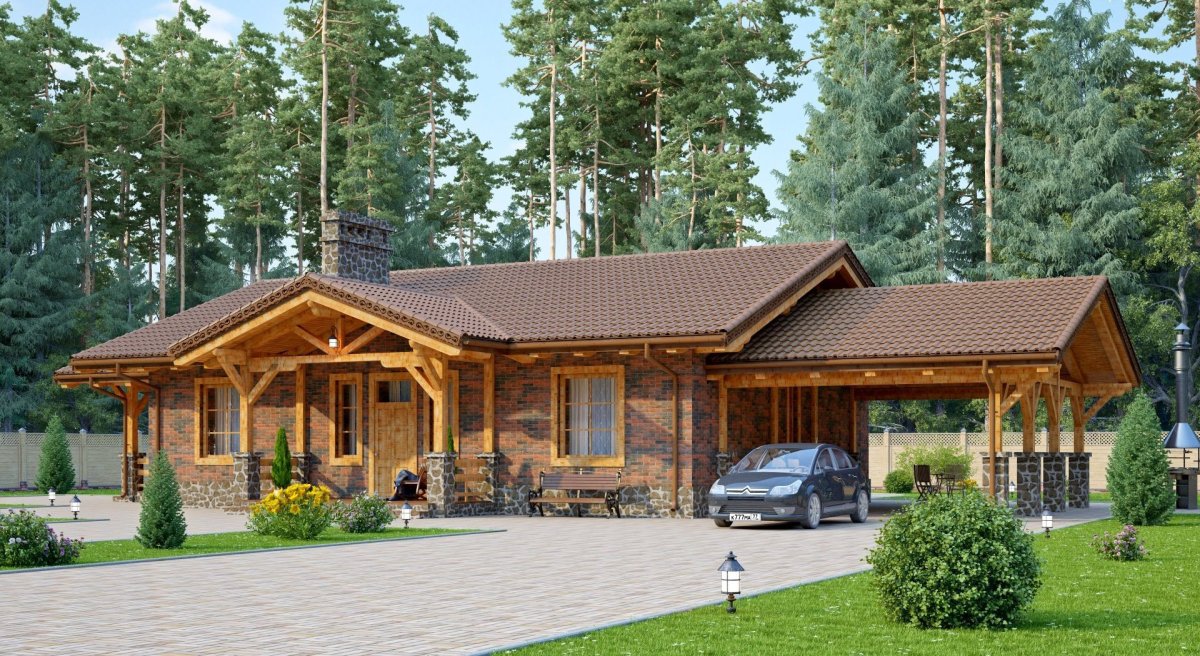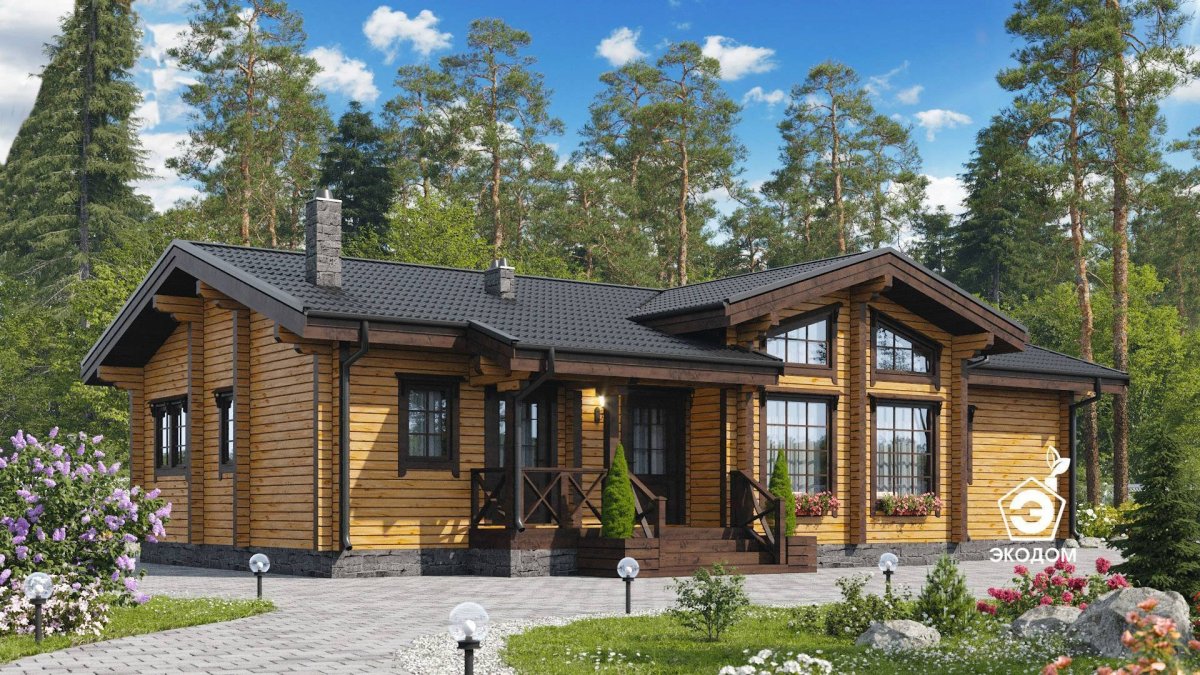 Одноэтажный дом в стиле хайтек из клееного бруса