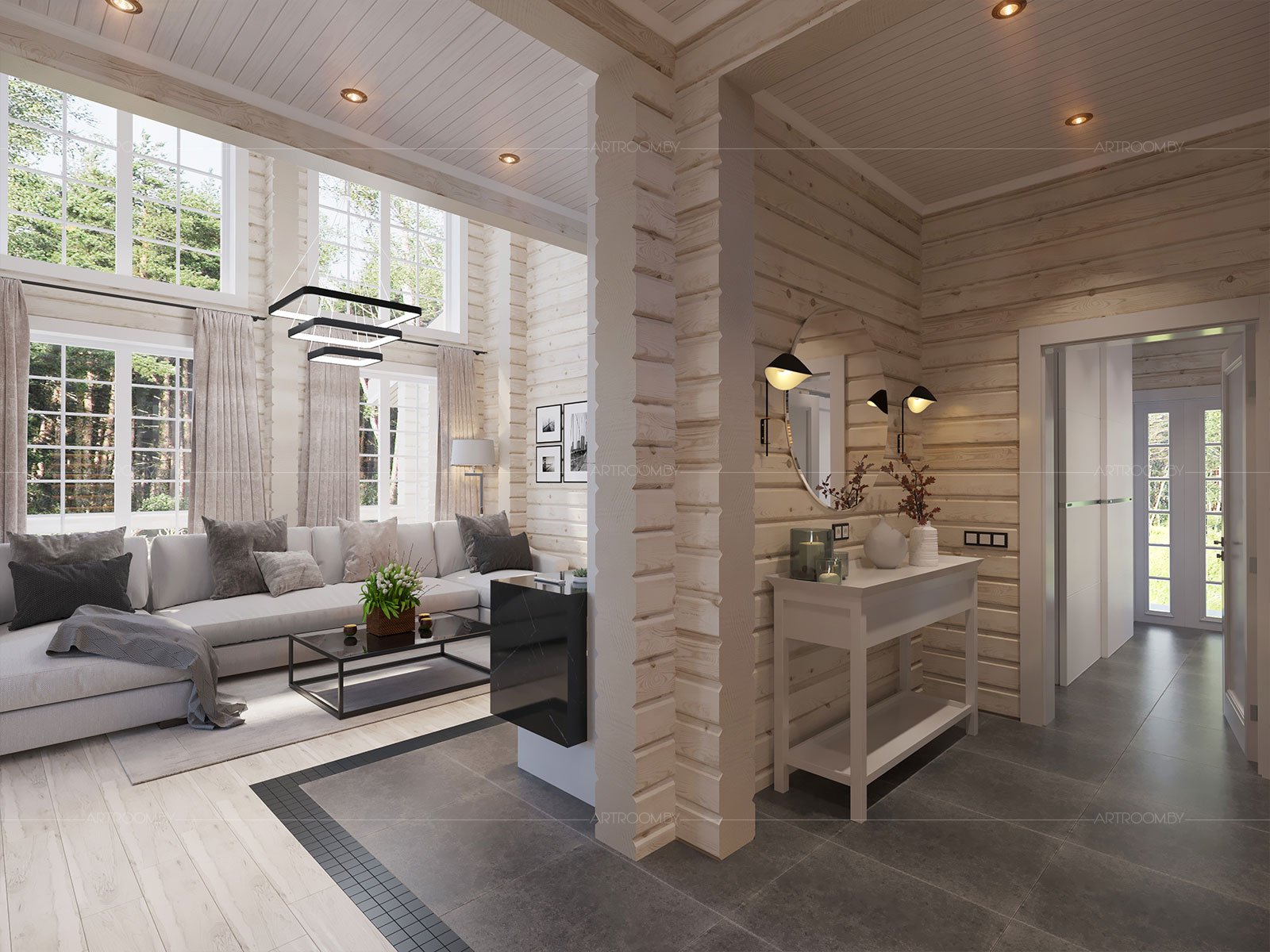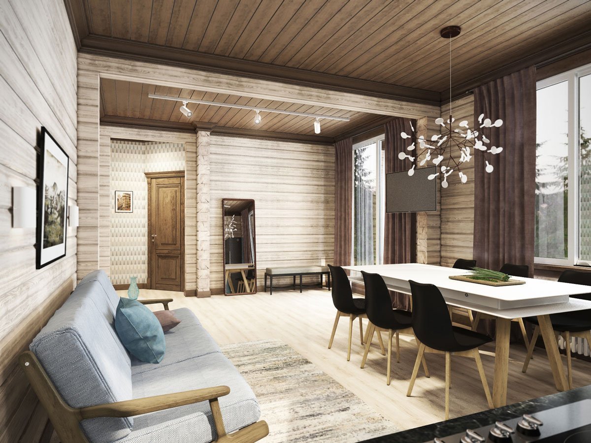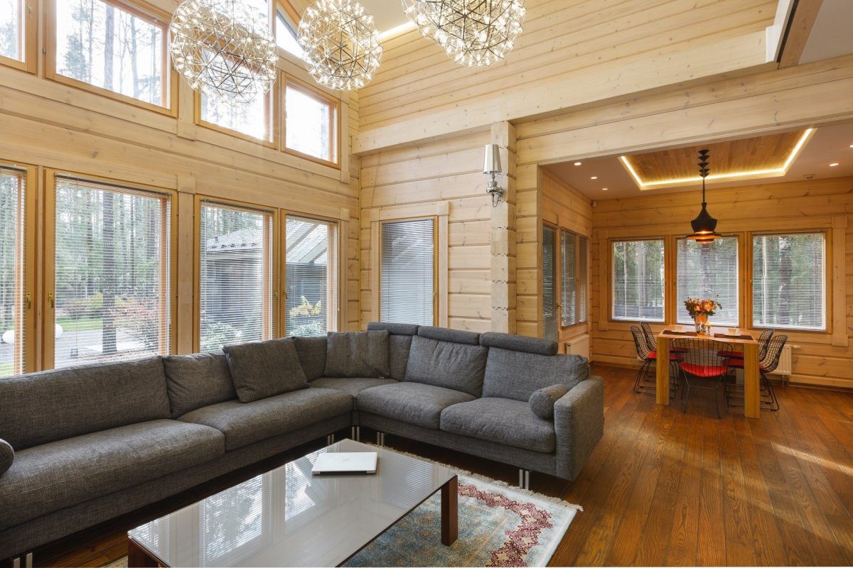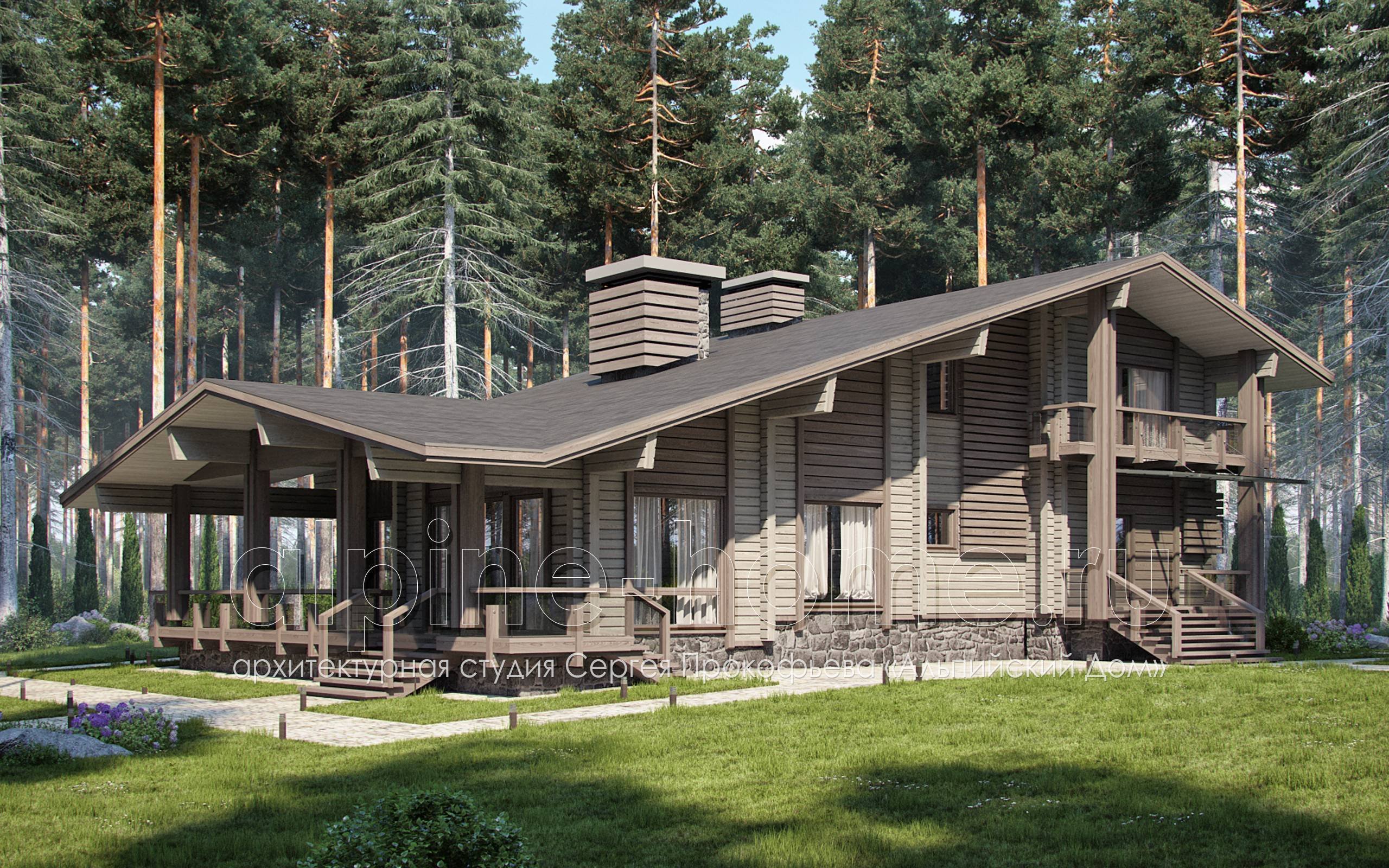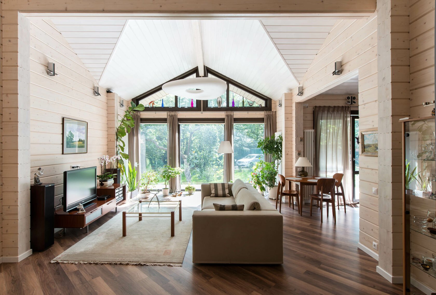 Одноэтажный дом в стиле хайтек из клееного бруса