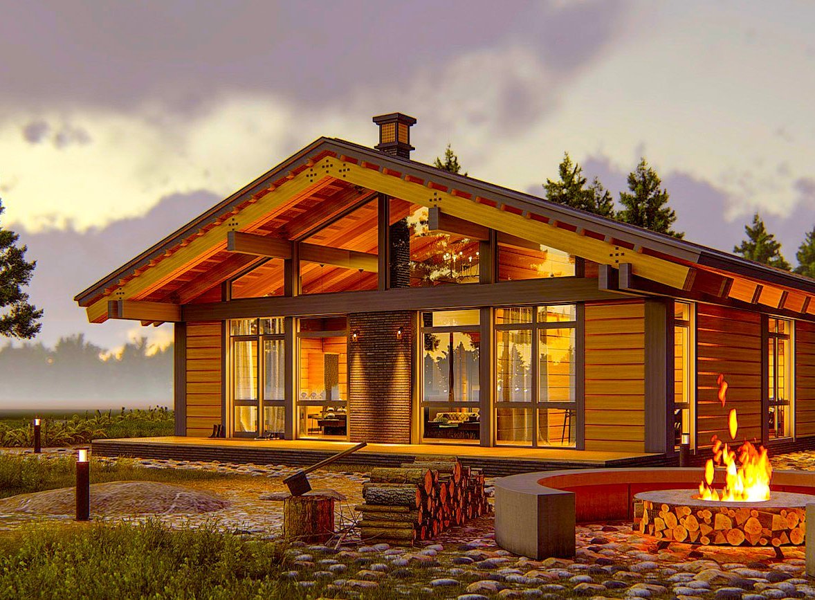 Дом 80 м2 одноэтажный из клееного бруса Шале