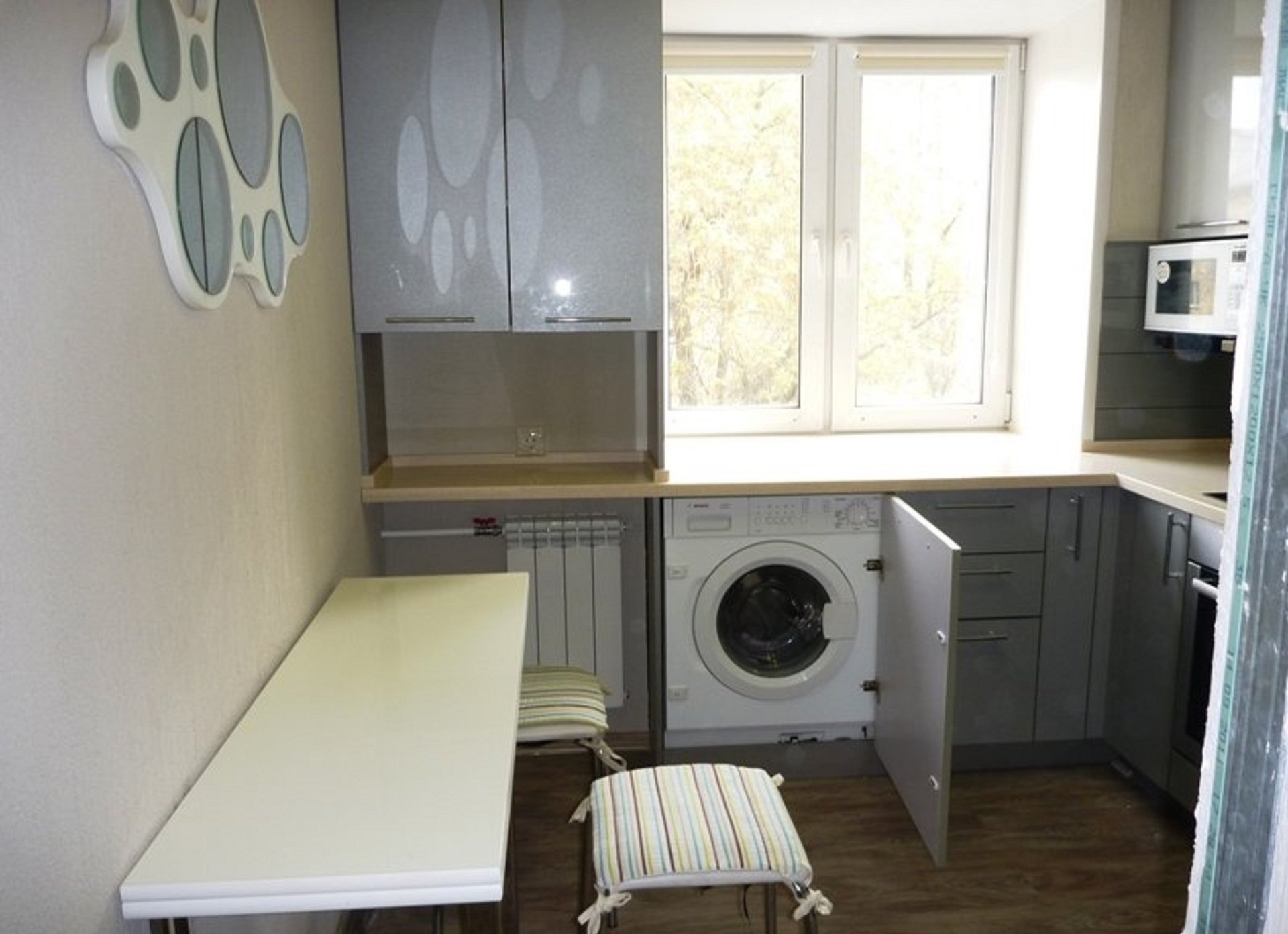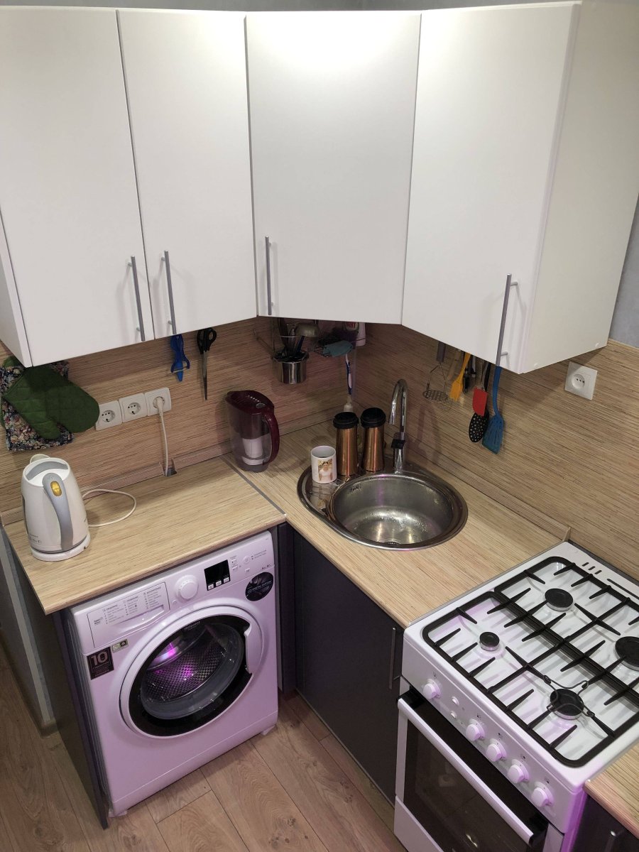 Кухня на 6/6кв метров с холодильником и стиральной машиной