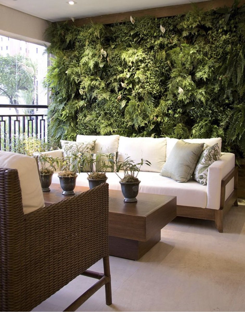 Экостиль в гостиной с фитостеной