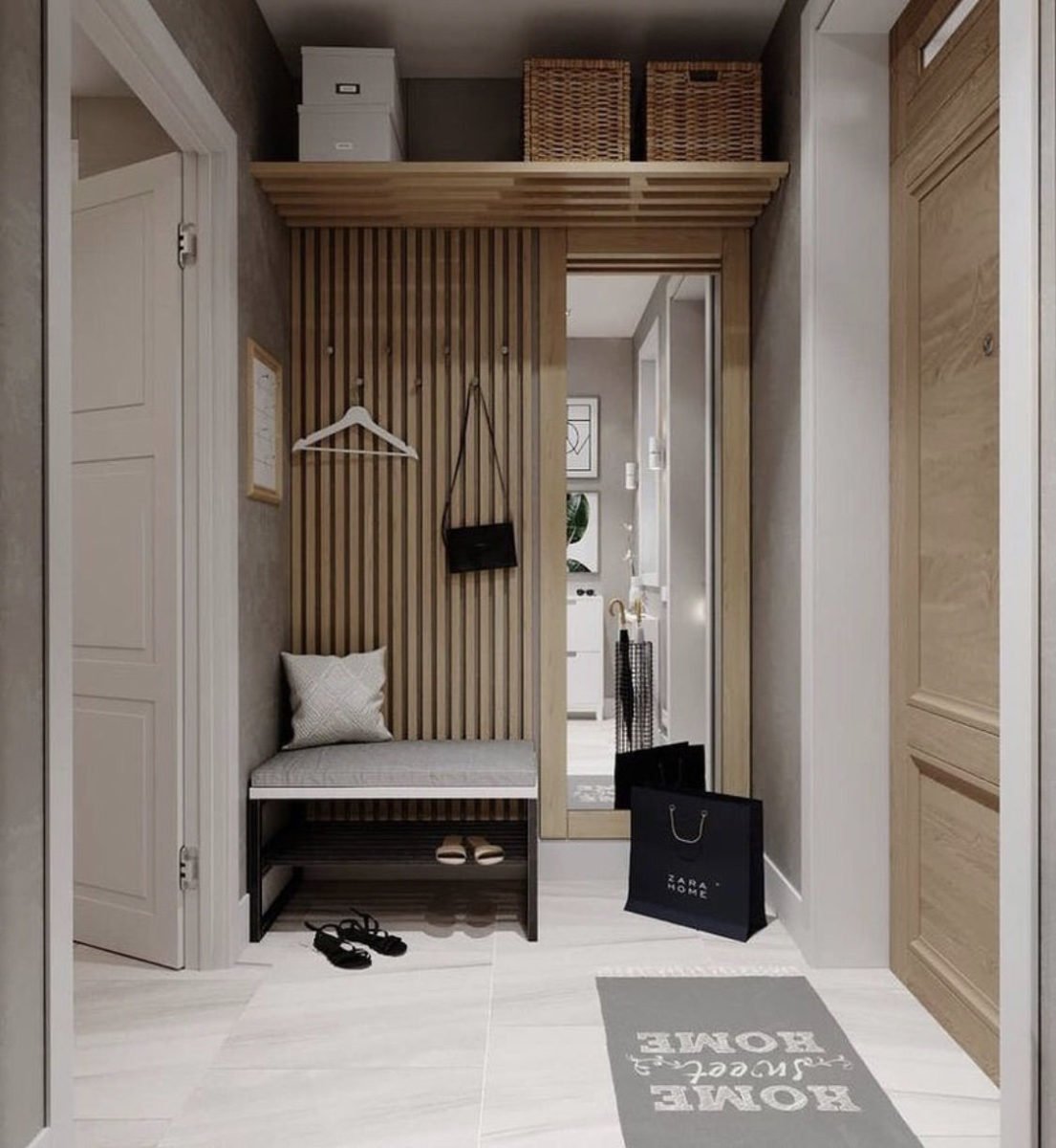 Прихожая с деревянными рейками