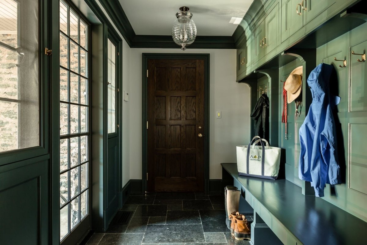 Зеленая мебель в прихожей на даче