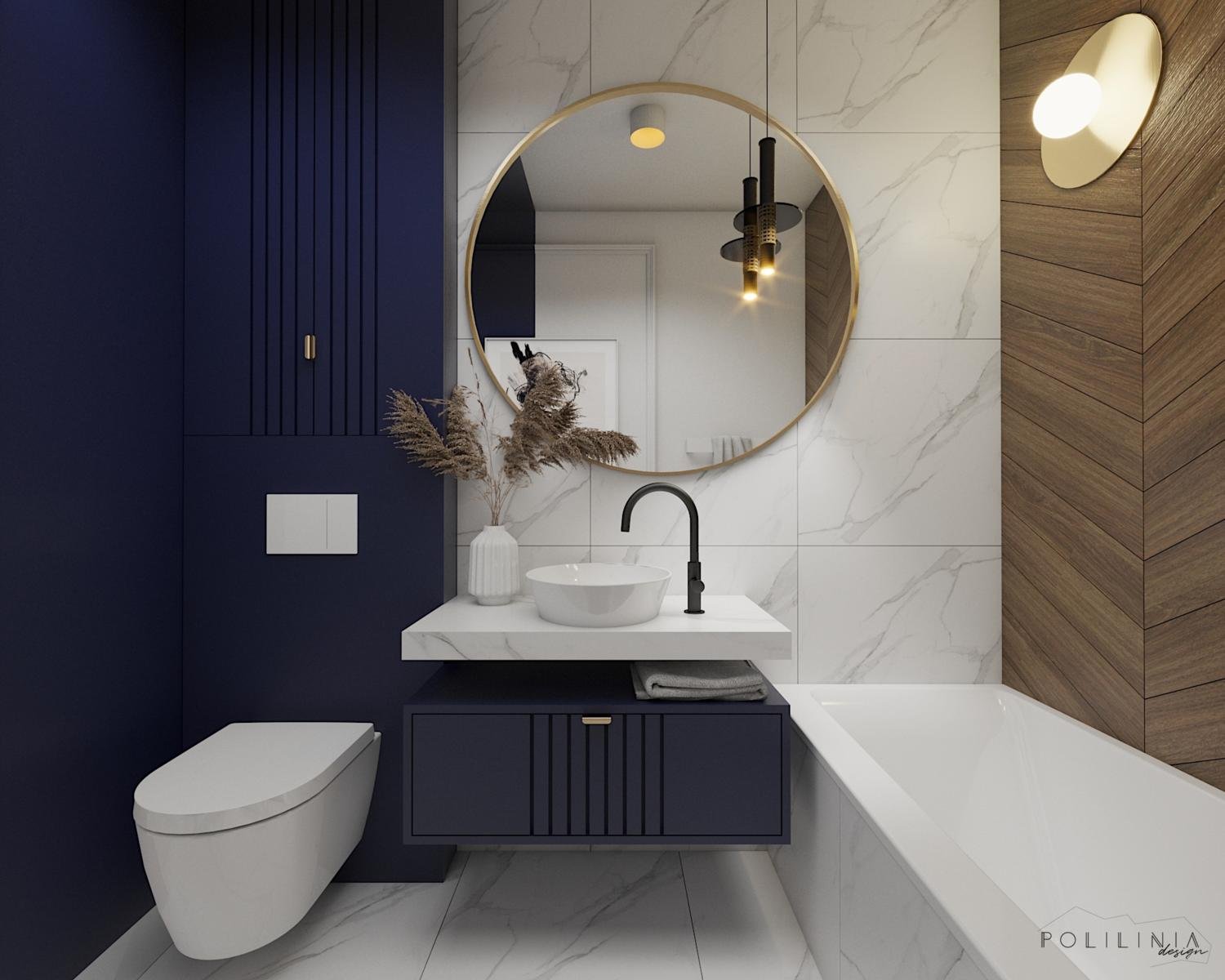 Темно синяя ванная комната
