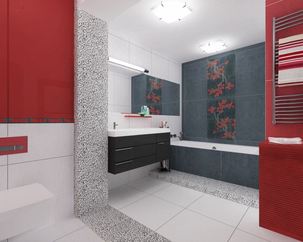 Серая и красная ванная
