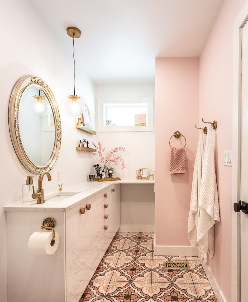 Ванная комната в пудровых тонах