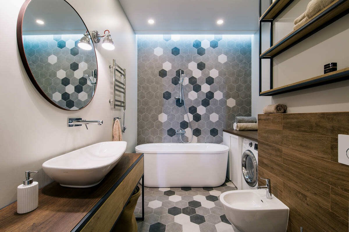 Сочетание плитки в ванной