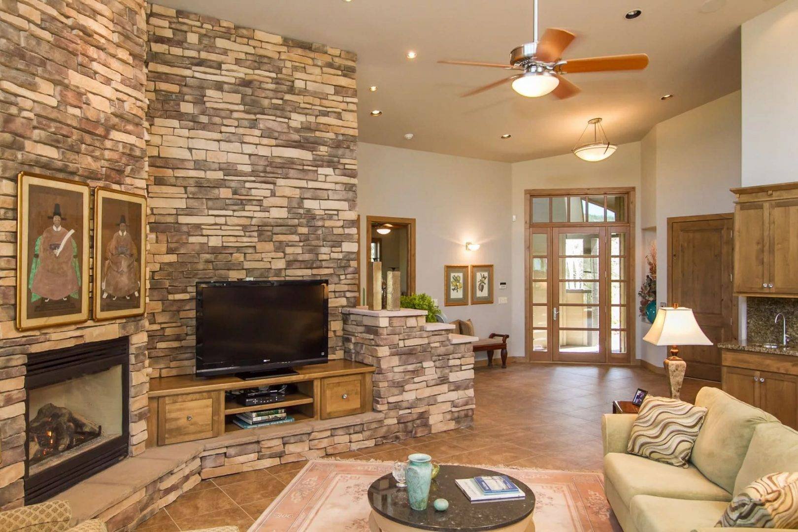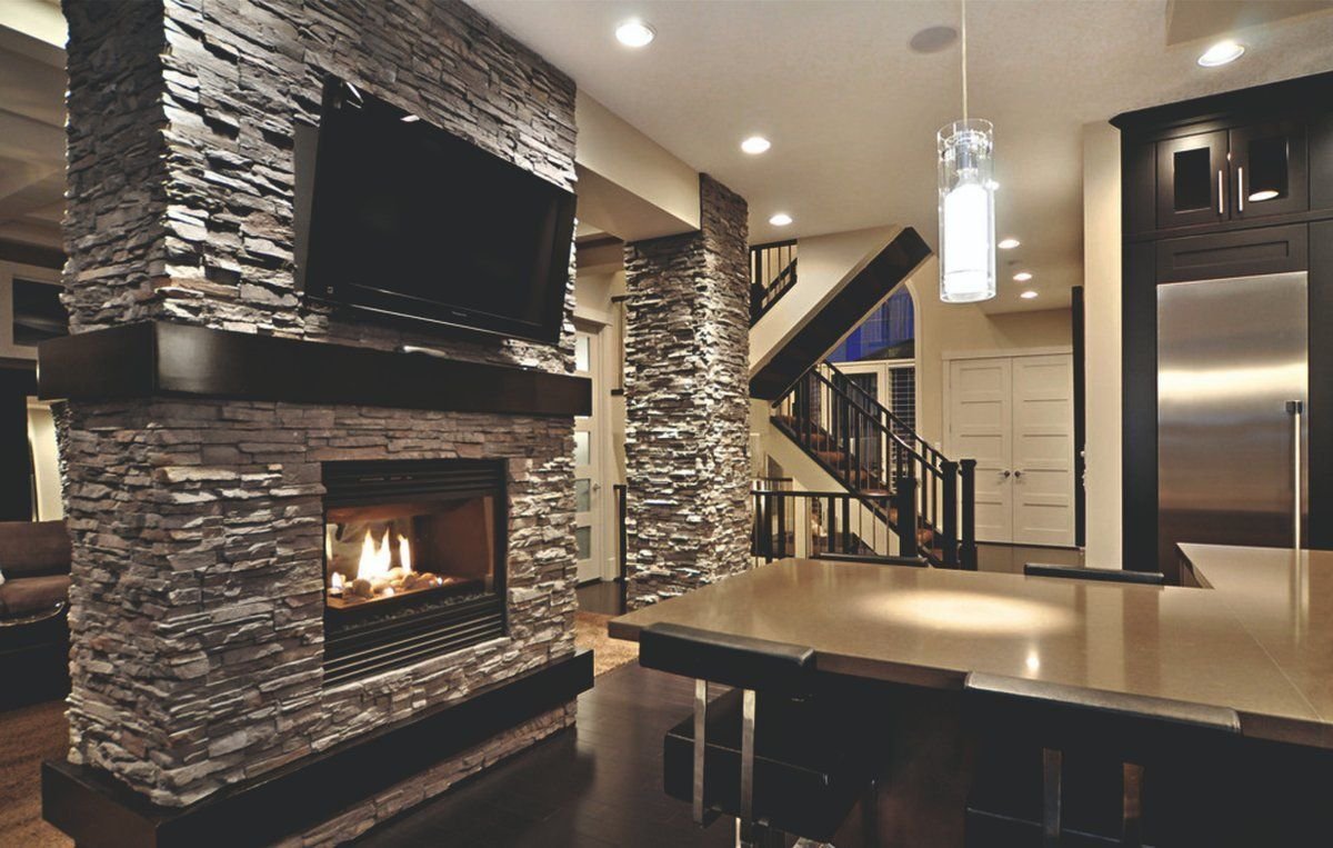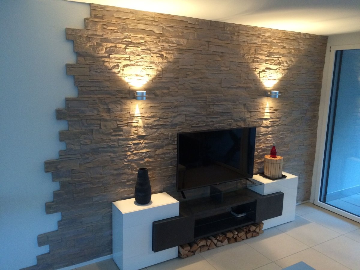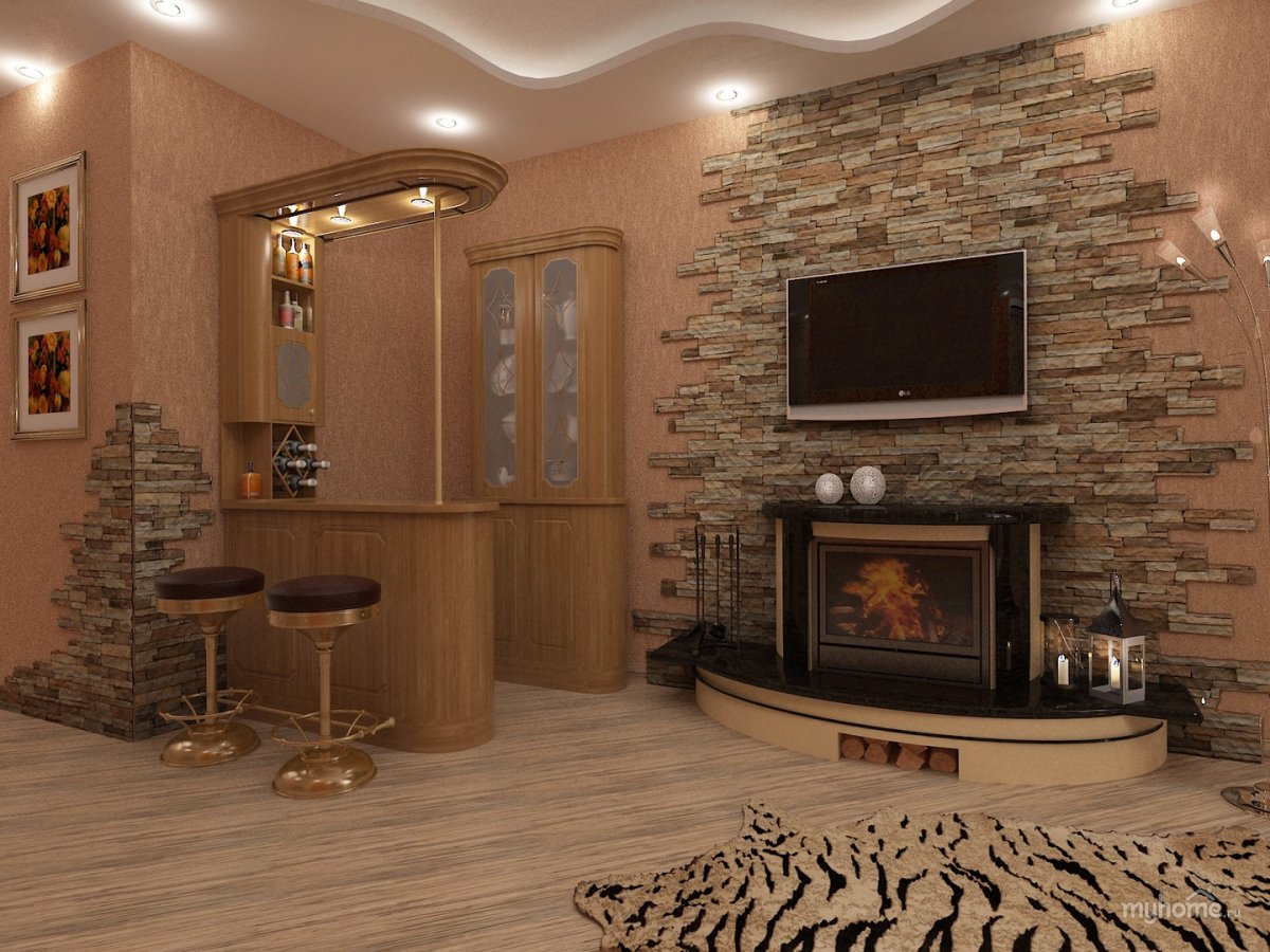 Отделка зала декоративным камнем
