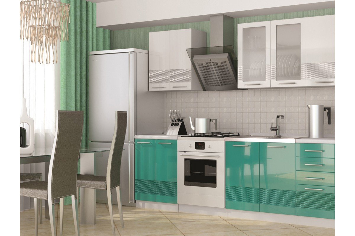 Кухня София 3d 1.8 м белый/белый-бирюза