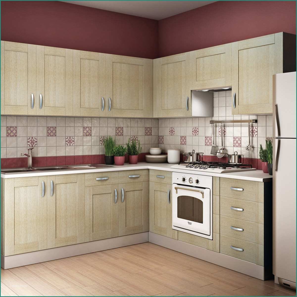 Кухня София олива 2,1 м, белый/гранат