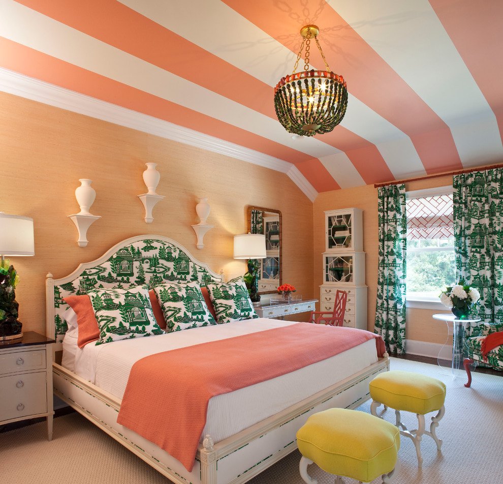 Коралловый цвет в интерьере спальни