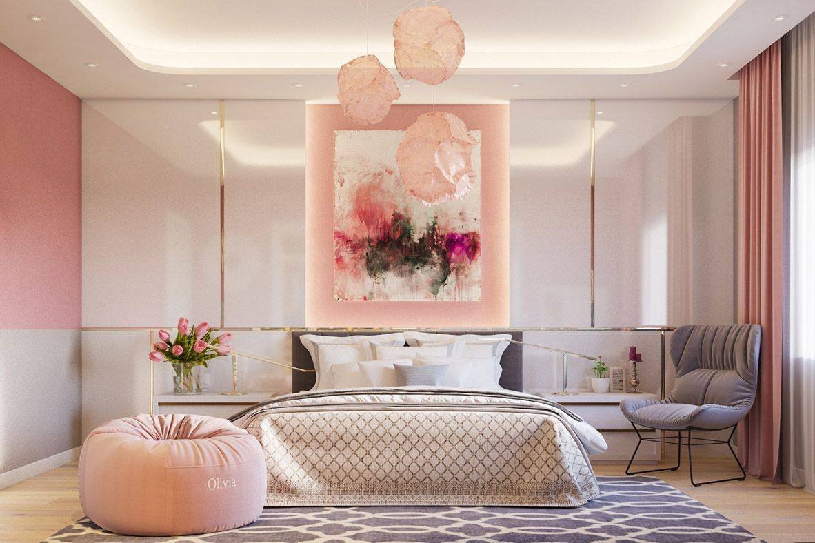Спальня в серо розовых тонах