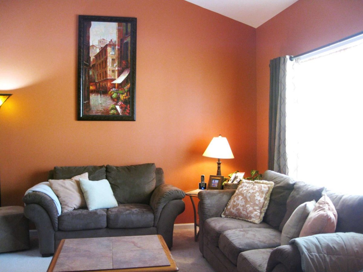 Гостиная с оранжевыми стенами