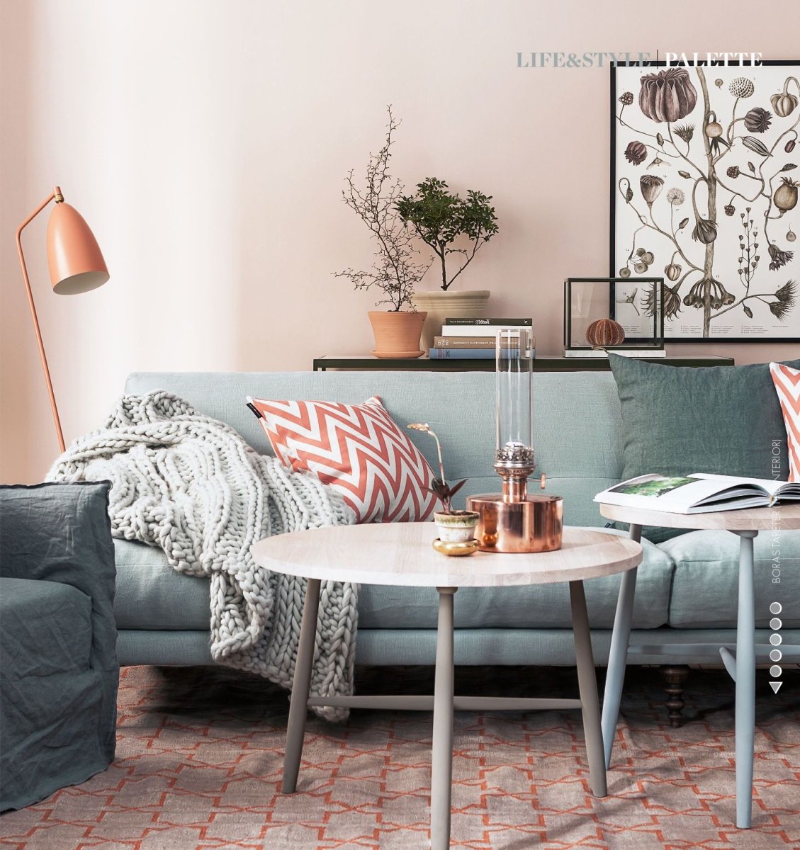 Интерьер Скандинавский в персиковом цвете