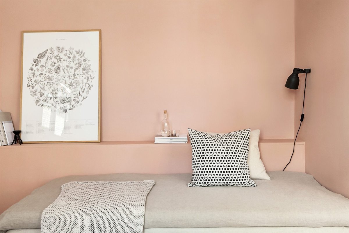 Скандинавский стиль на розовых стенах