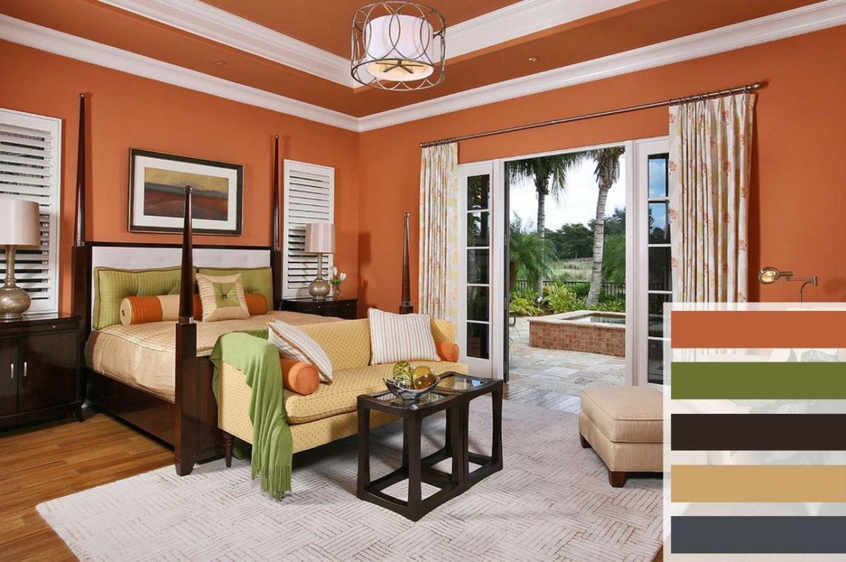 Спальня в оранжевых тонах