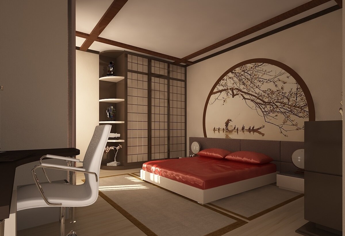 Японский стиль в интерьере спальни