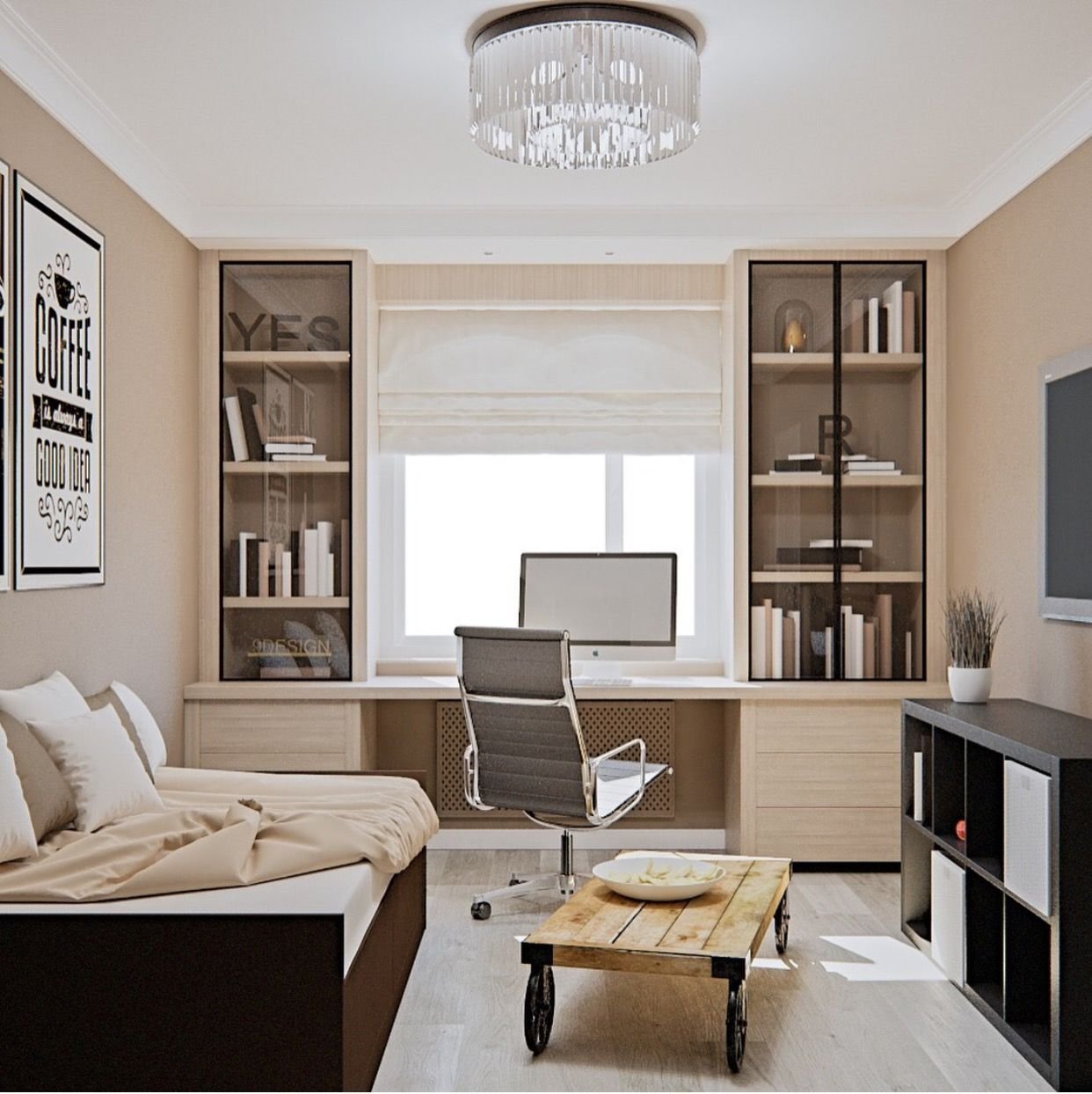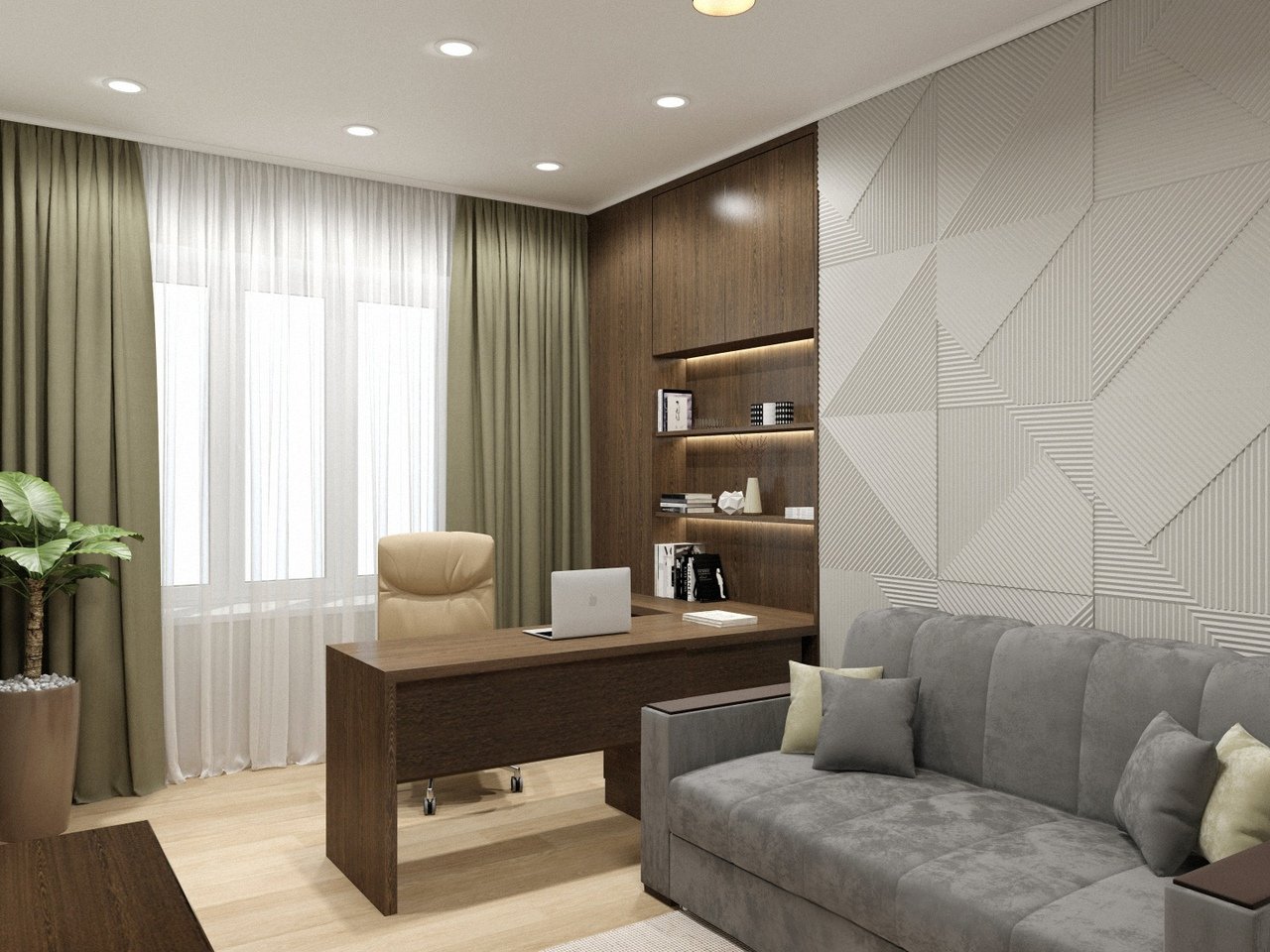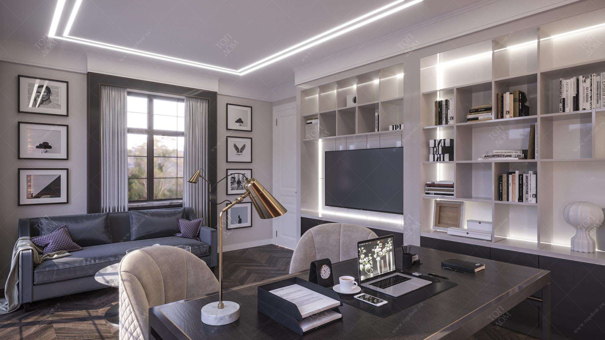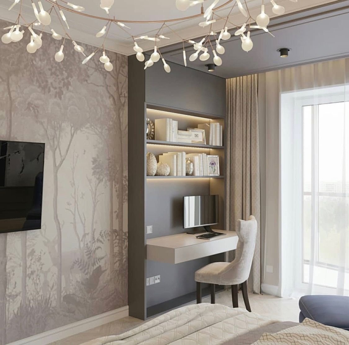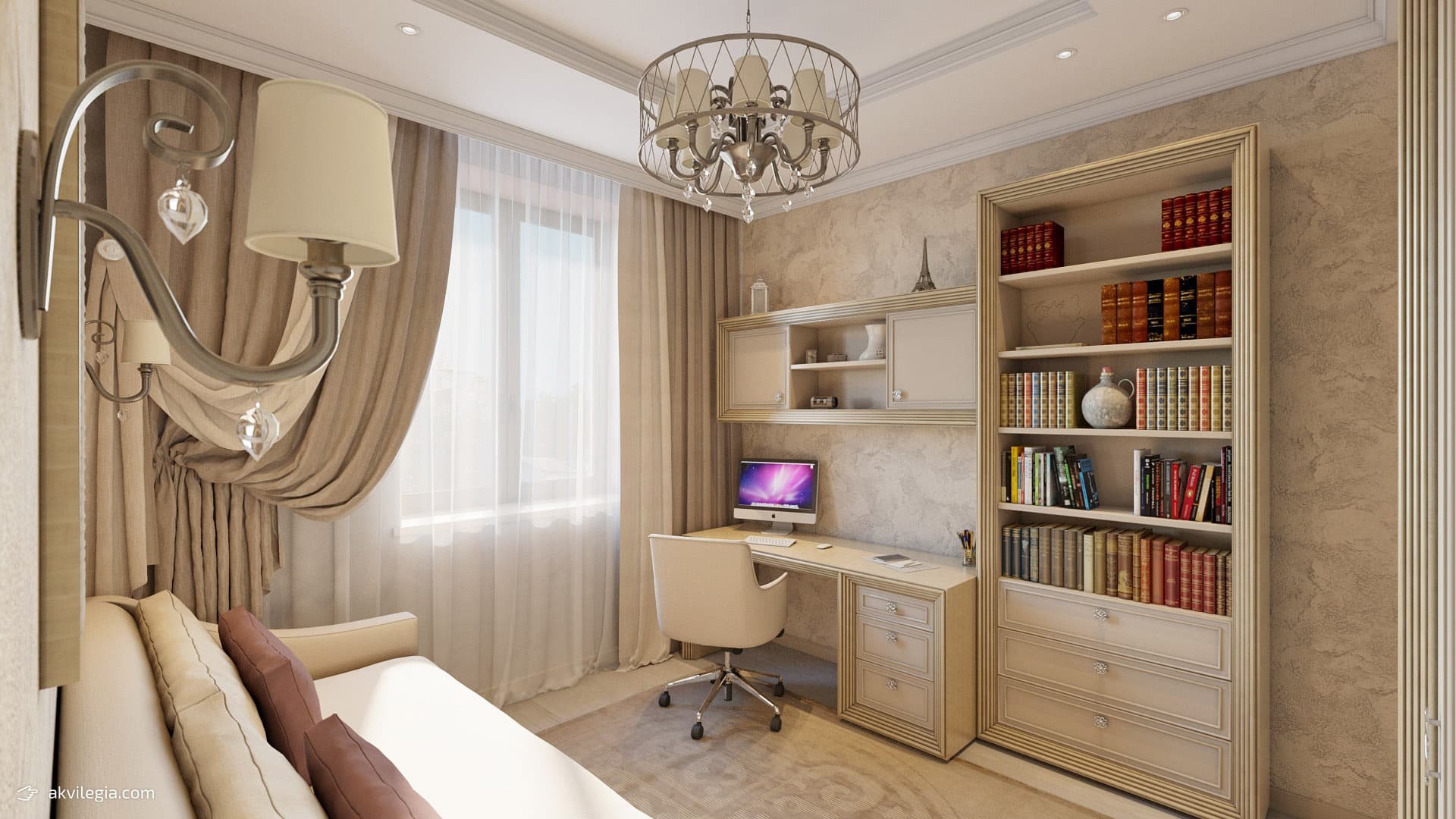 Интерьер кабинета в квартире в современном стиле в светлых тонах