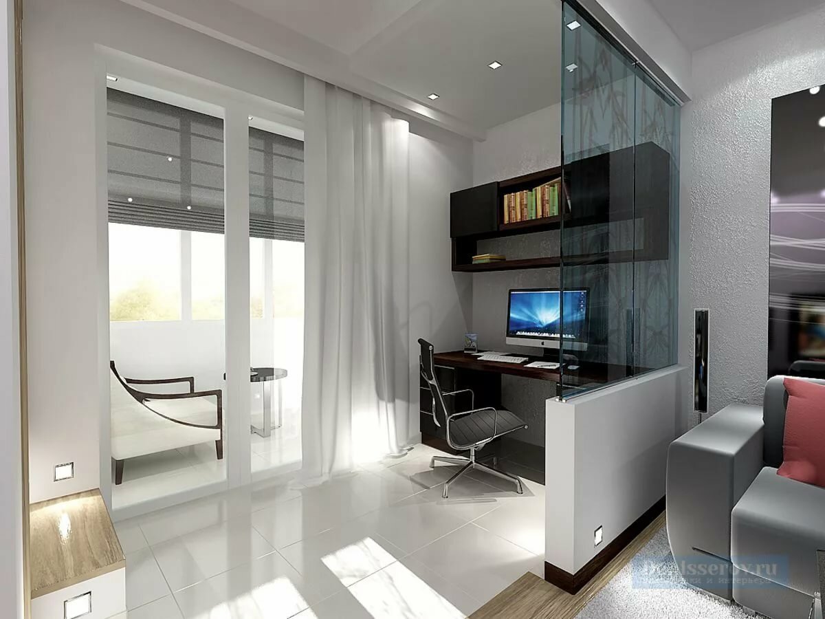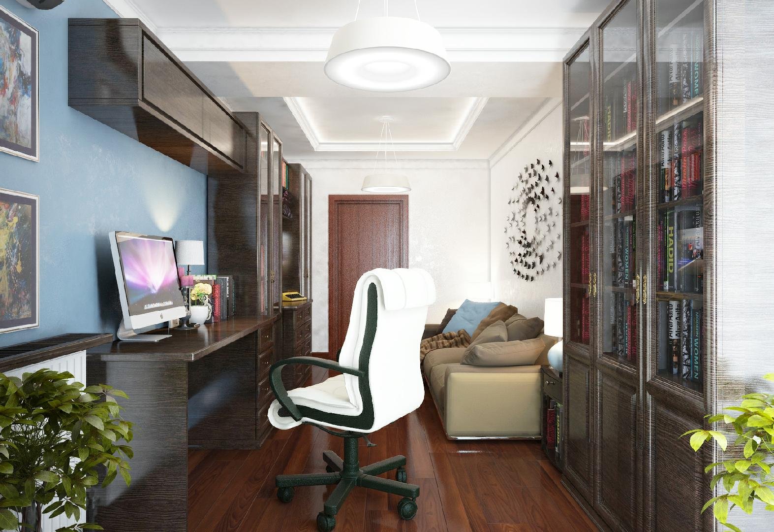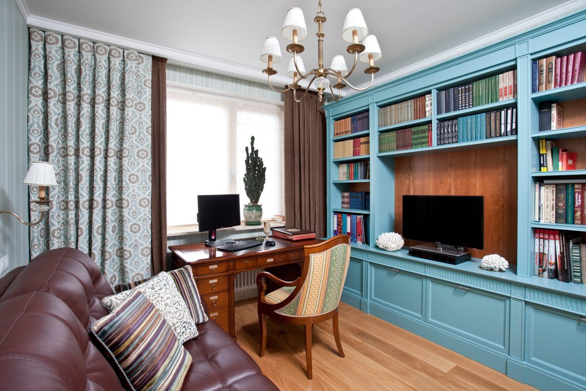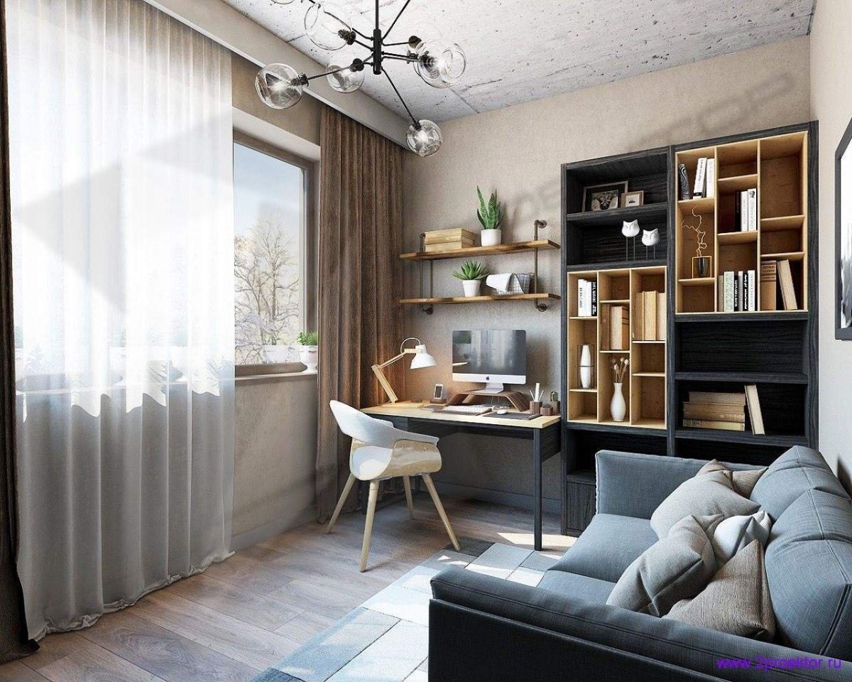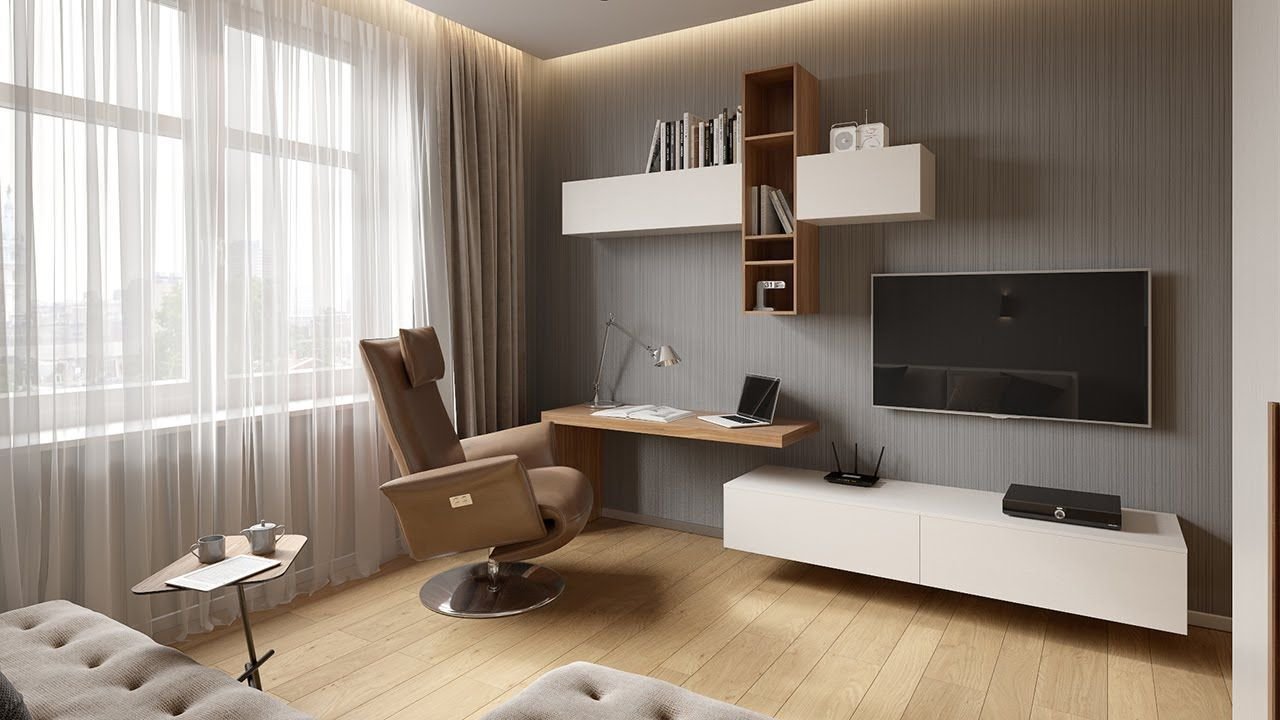 Интерьер кабинета в квартире в современном стиле в светлых тонах