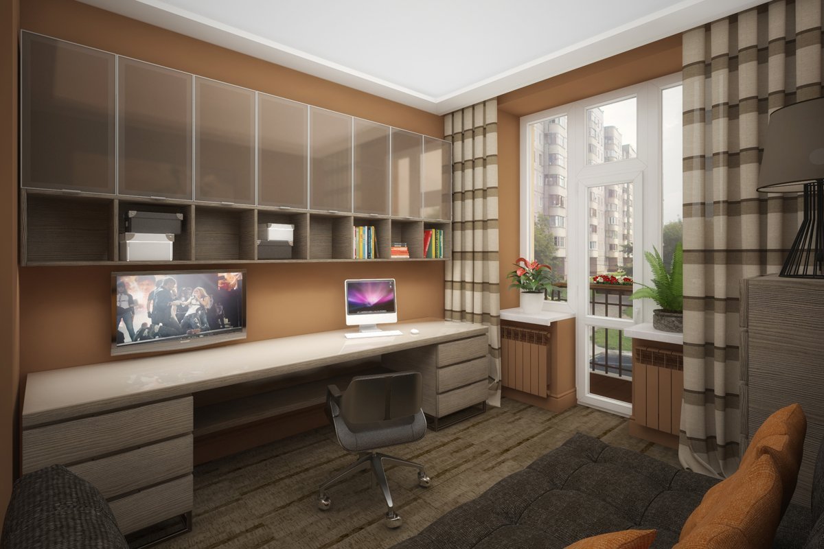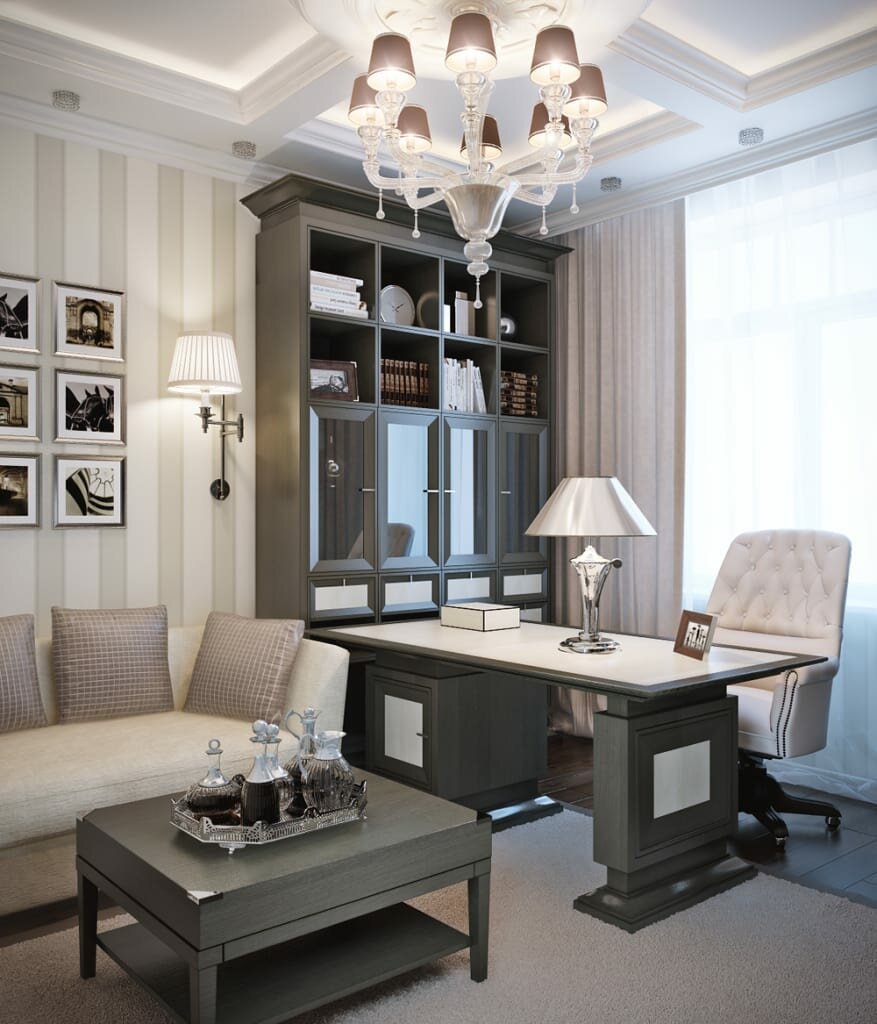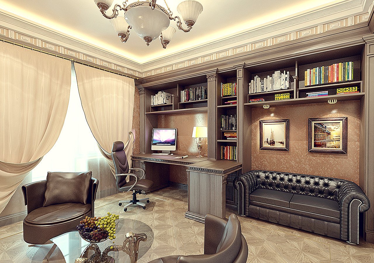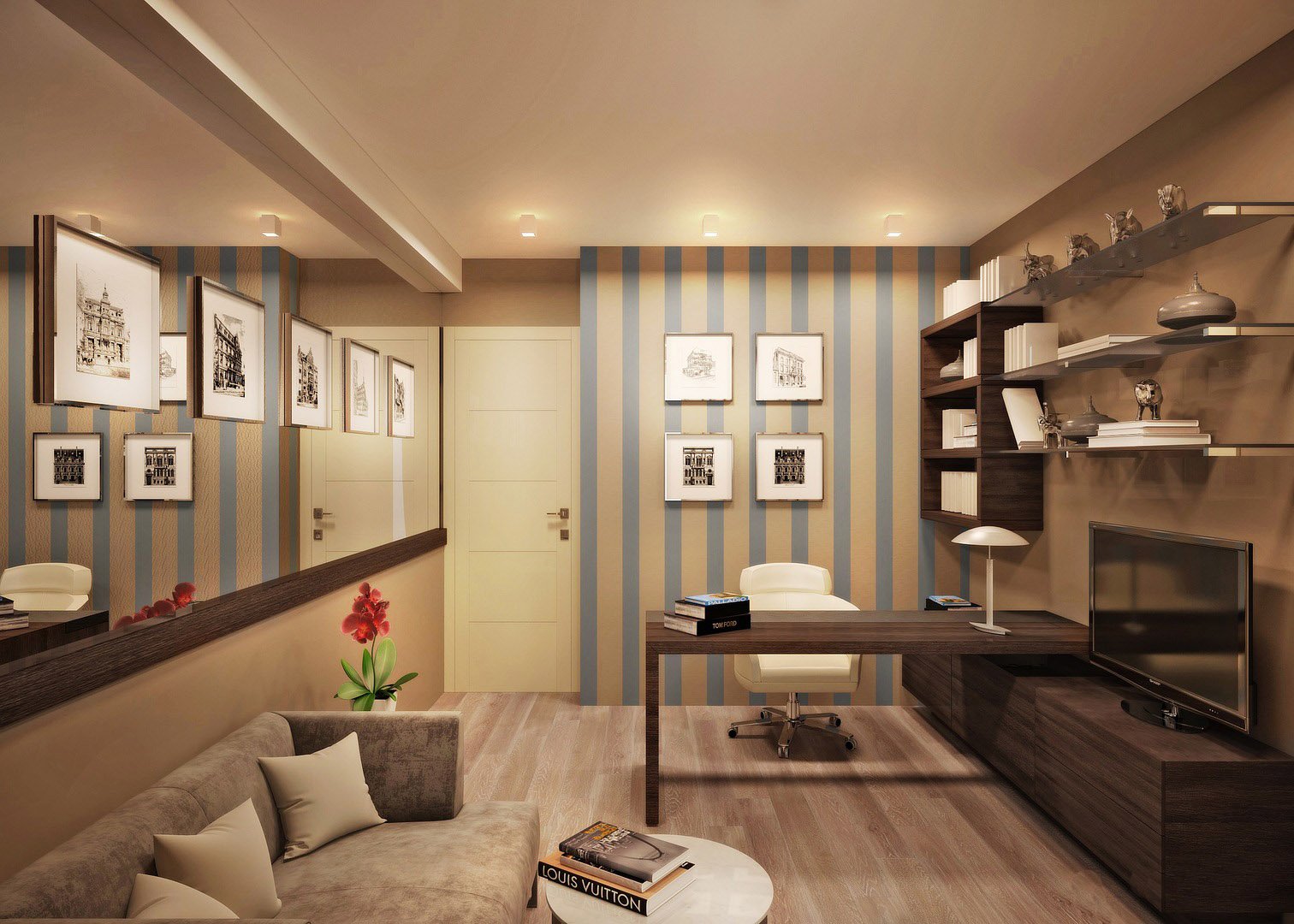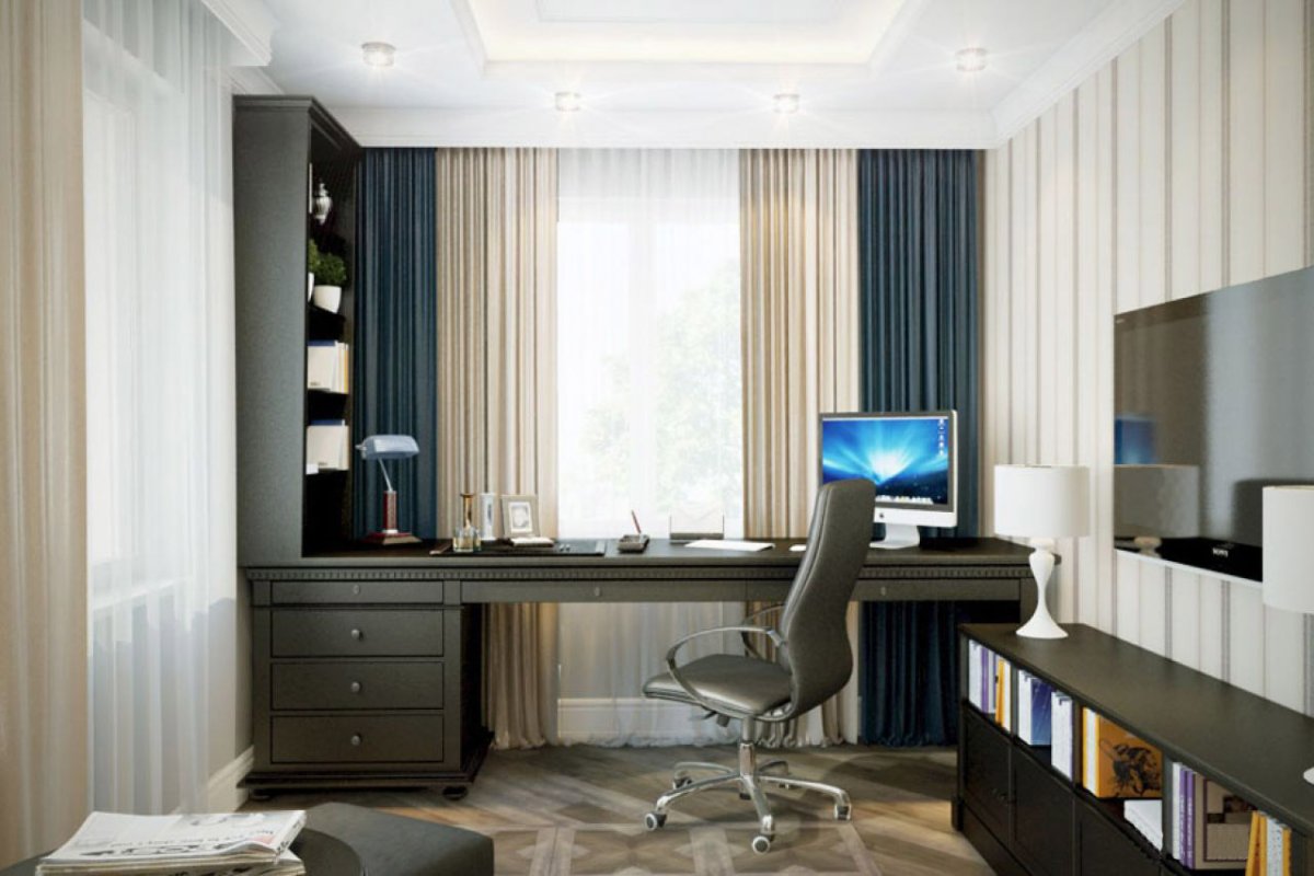 Интерьер кабинета в квартире в современном стиле в светлых тонах