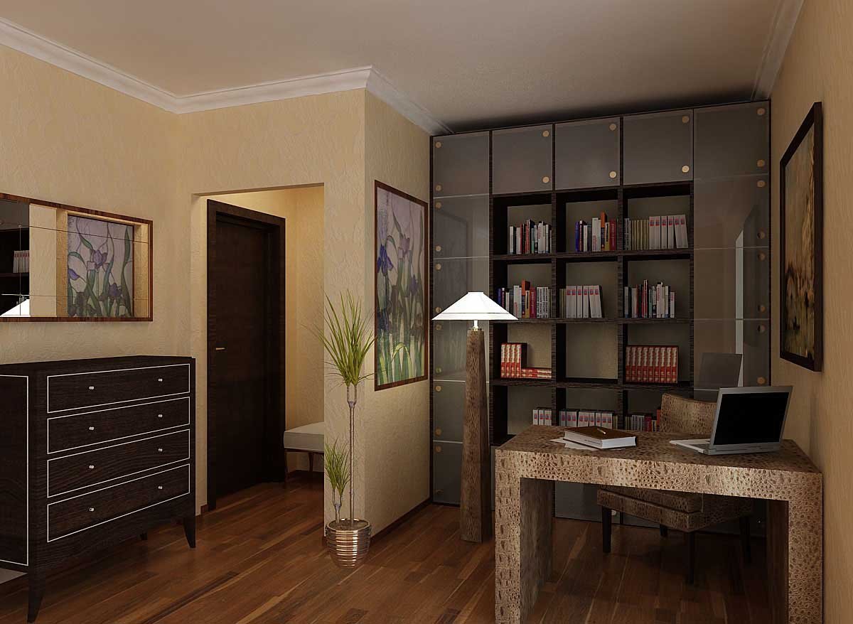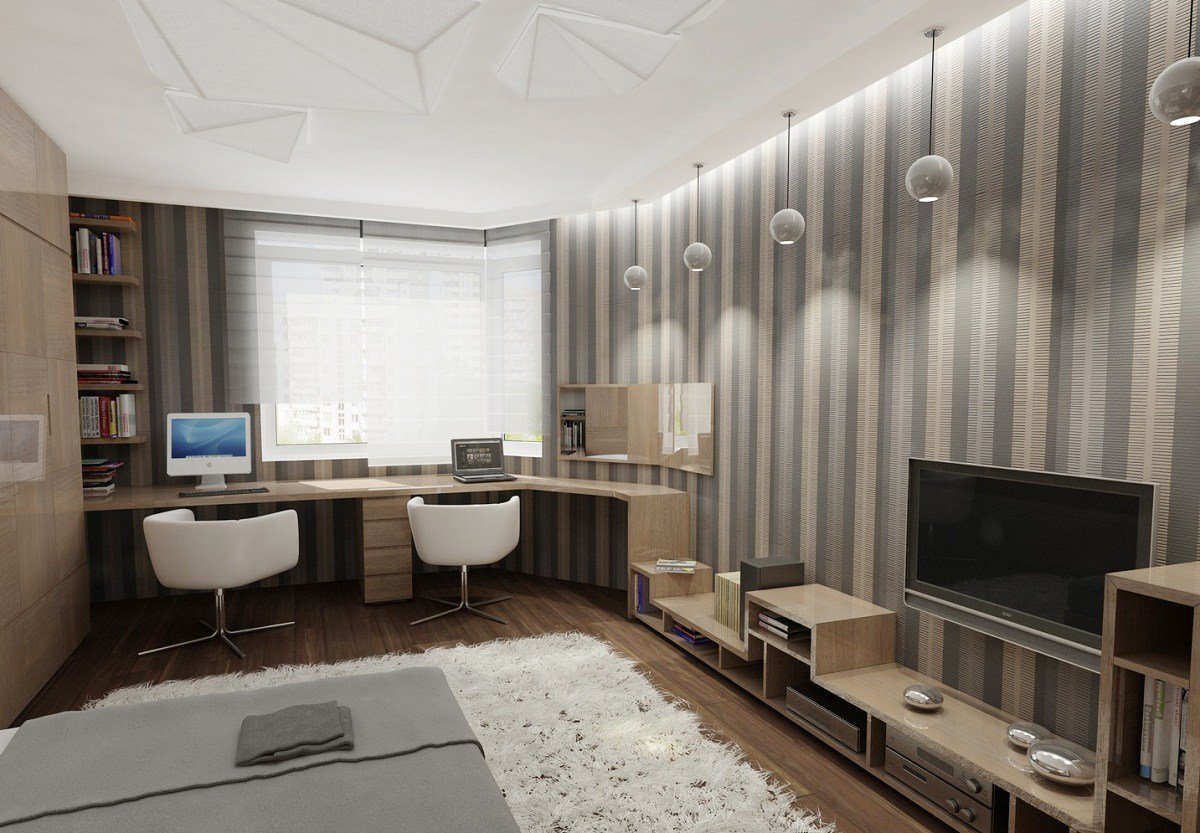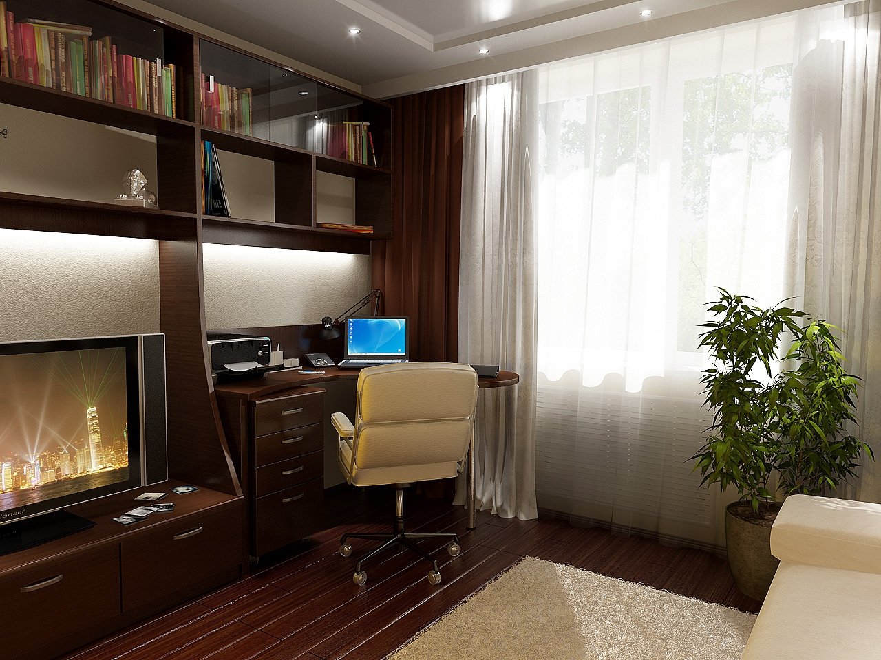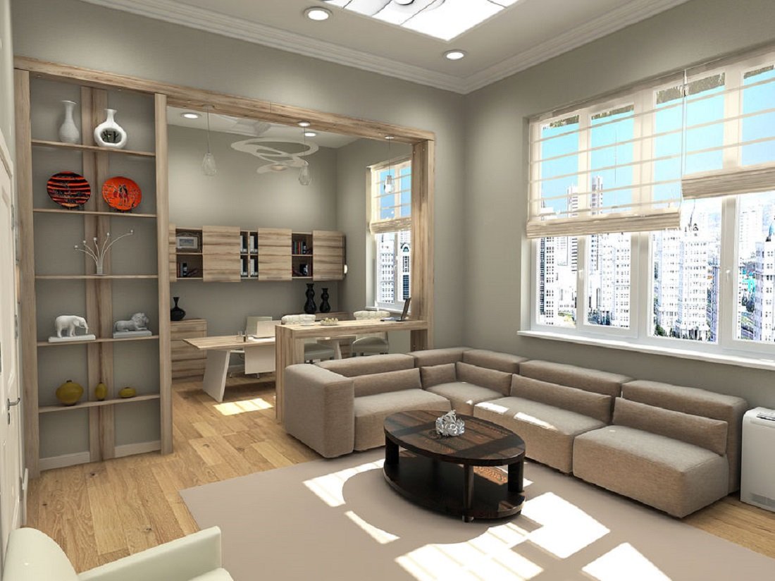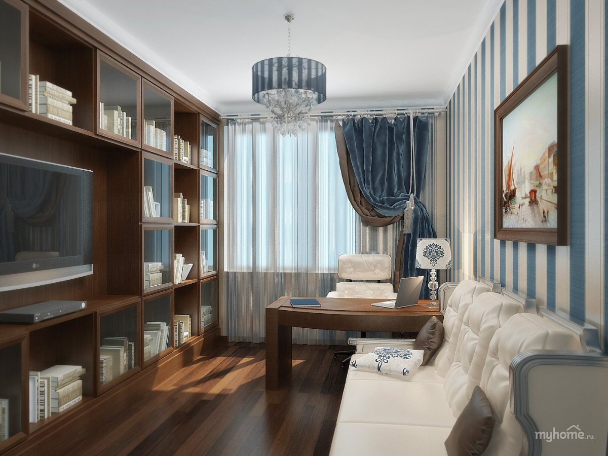 Интерьер кабинета в квартире в современном стиле в светлых тонах