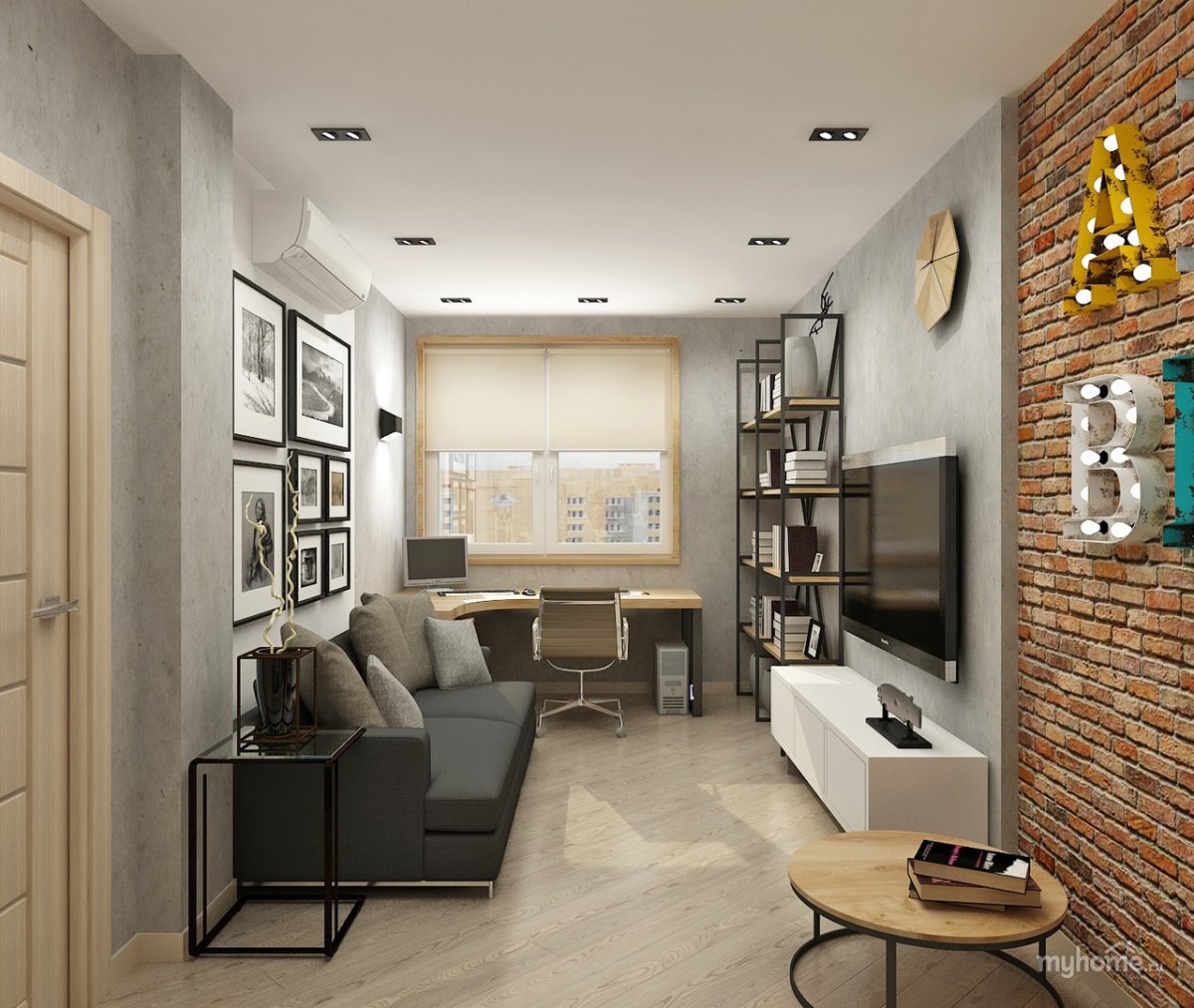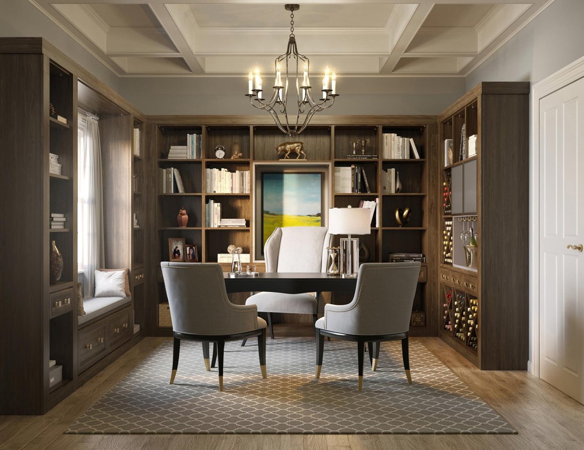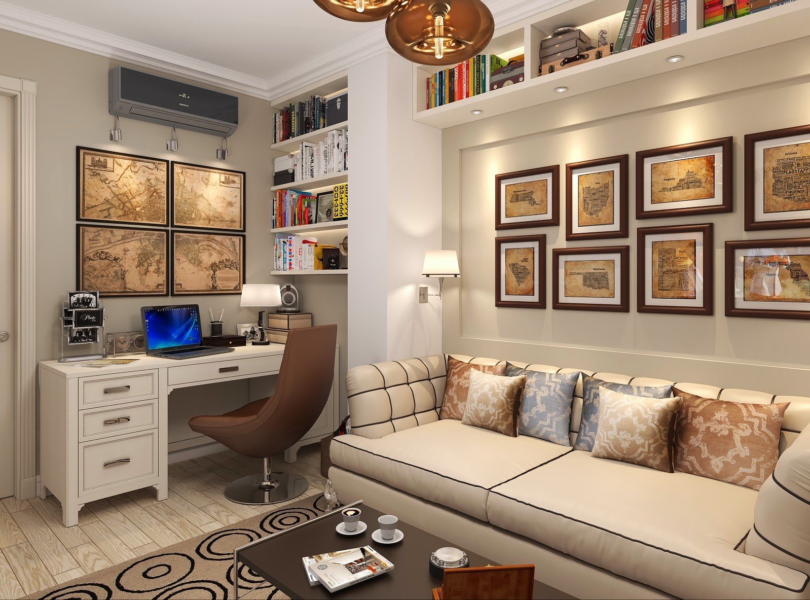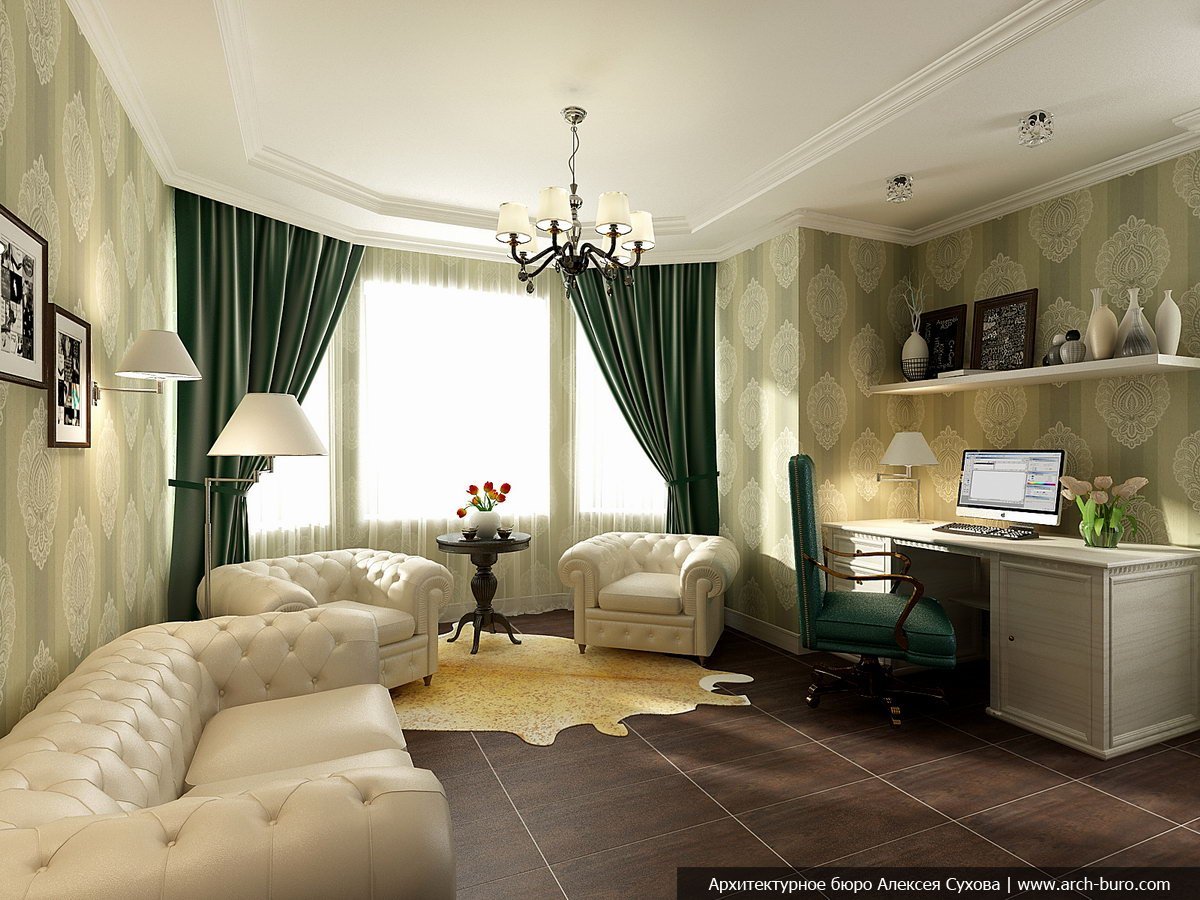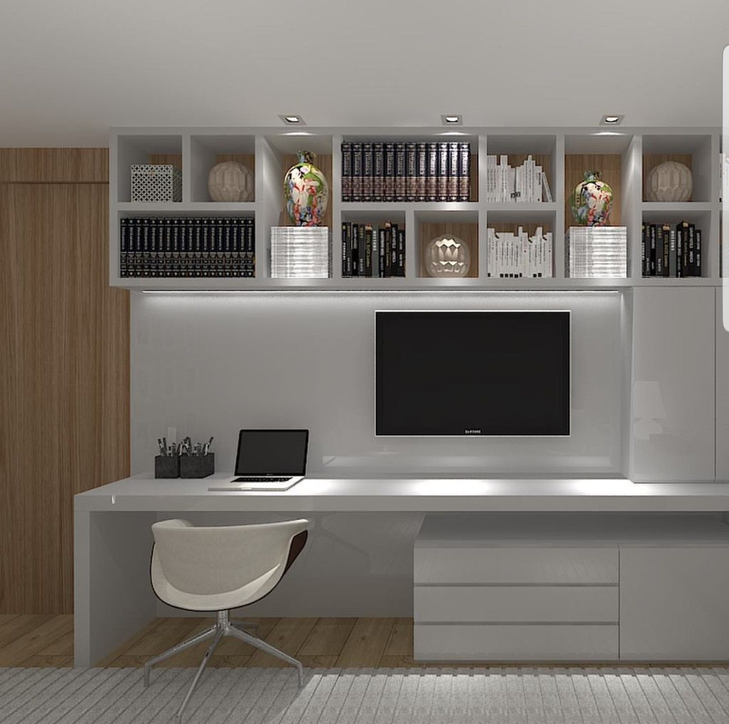 Интерьер кабинета в квартире в современном стиле в светлых тонах