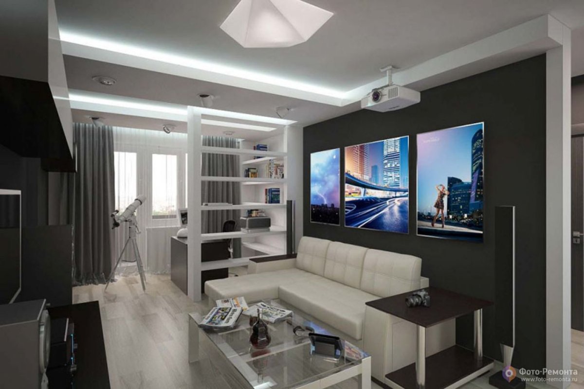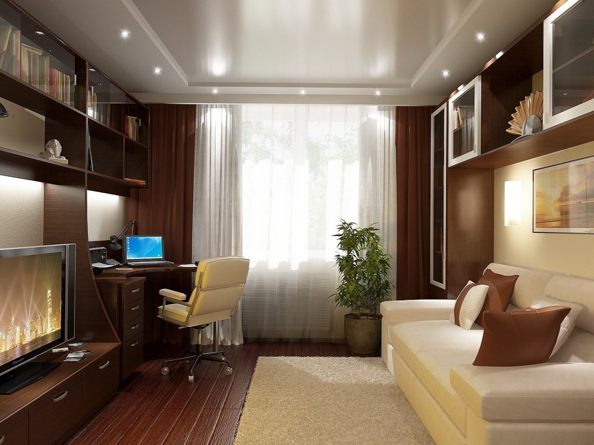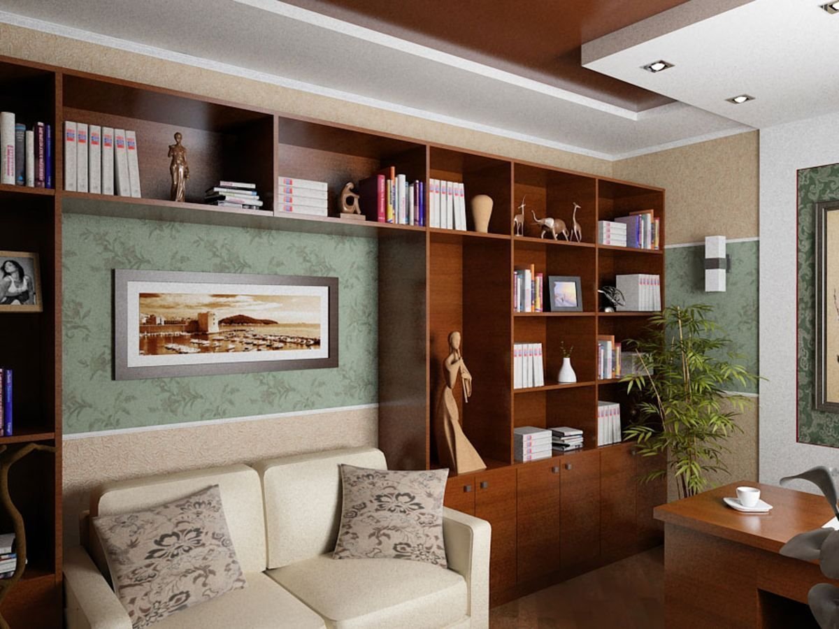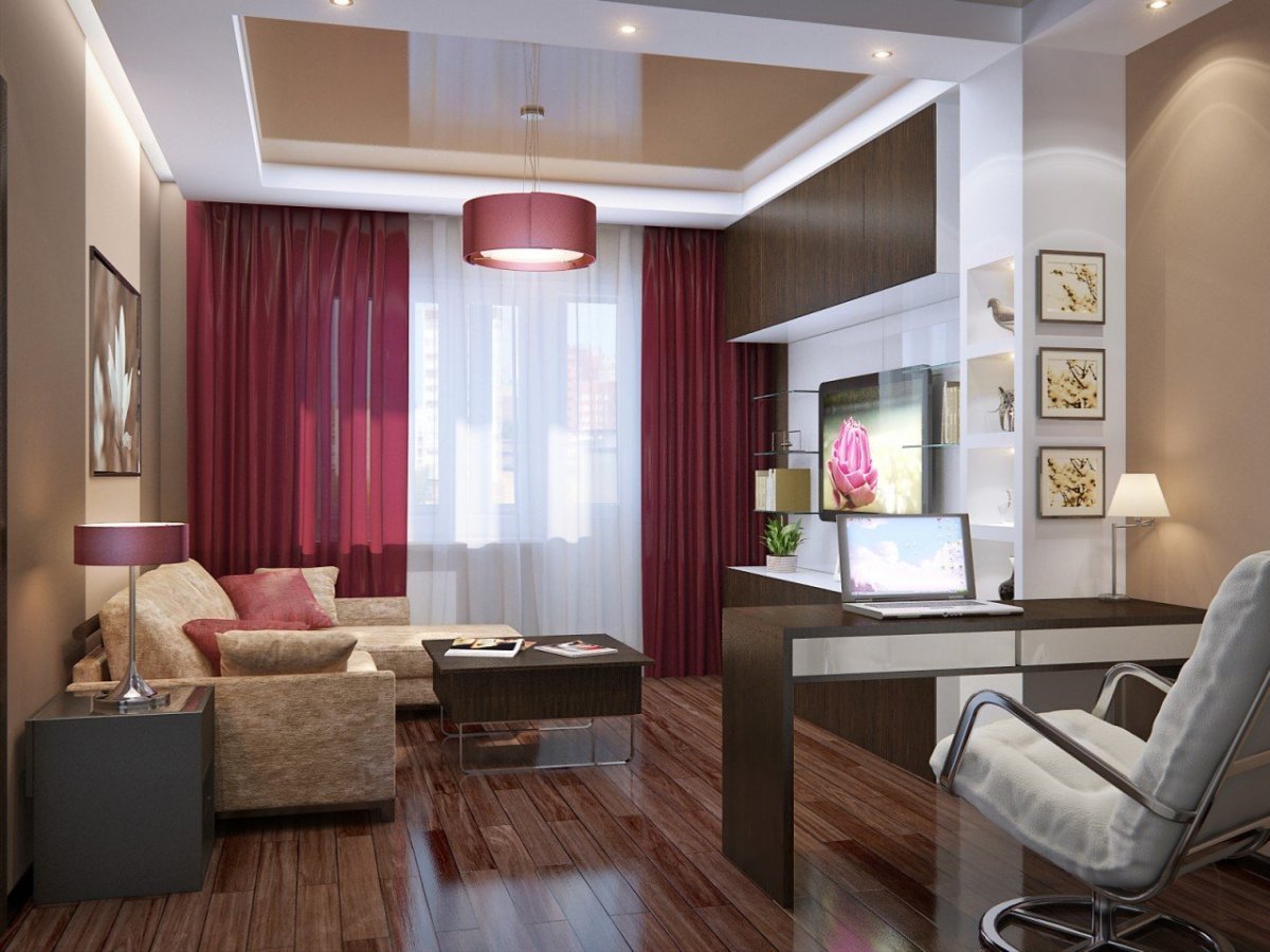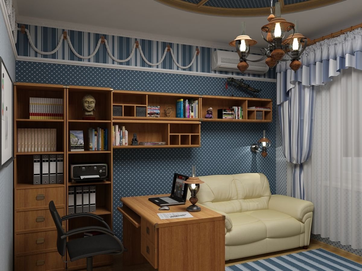 Интерьер кабинета в квартире в современном стиле в светлых тонах
