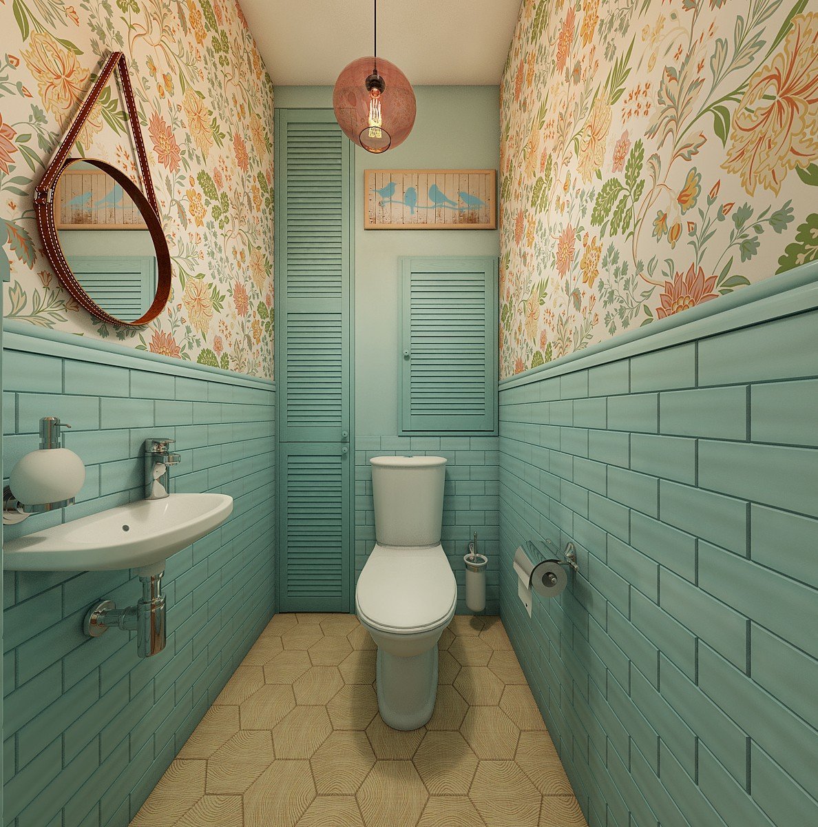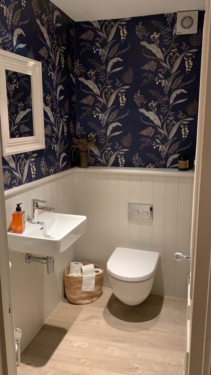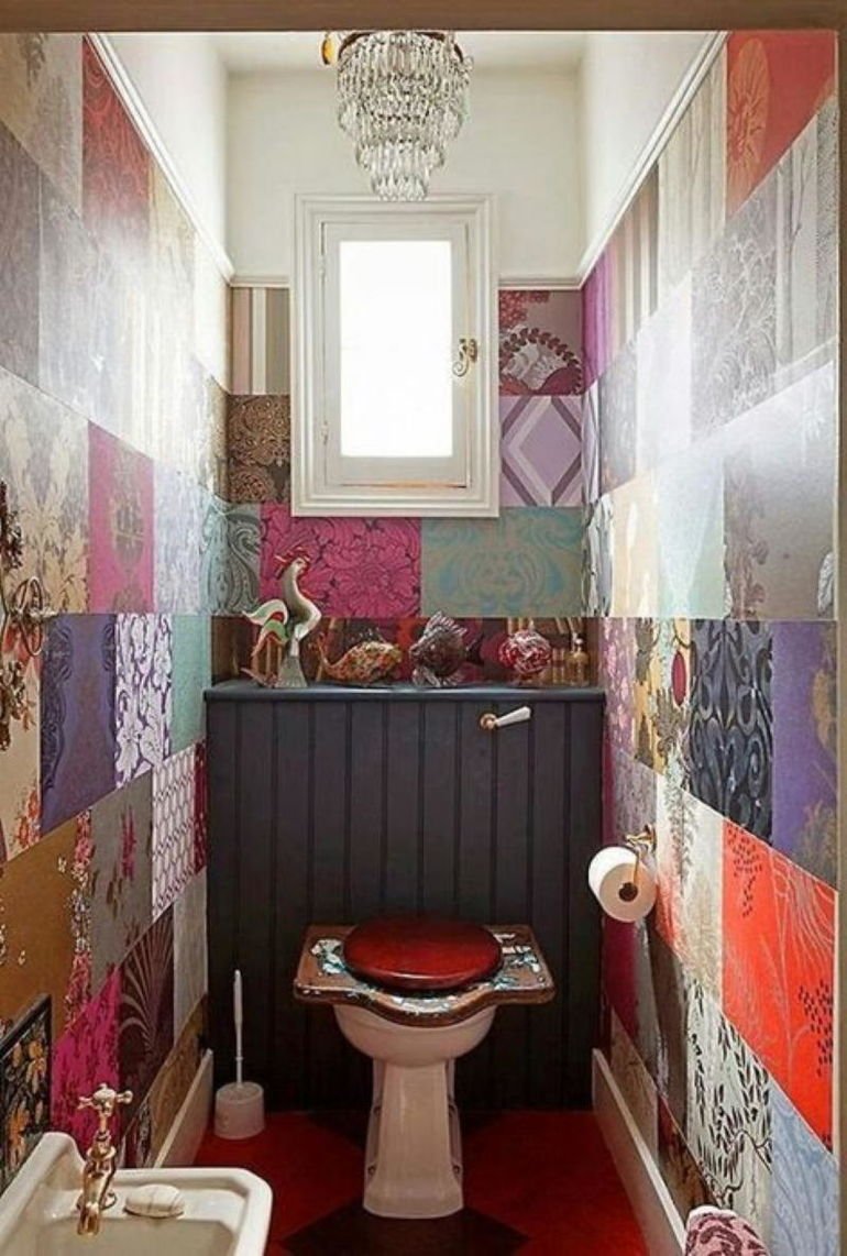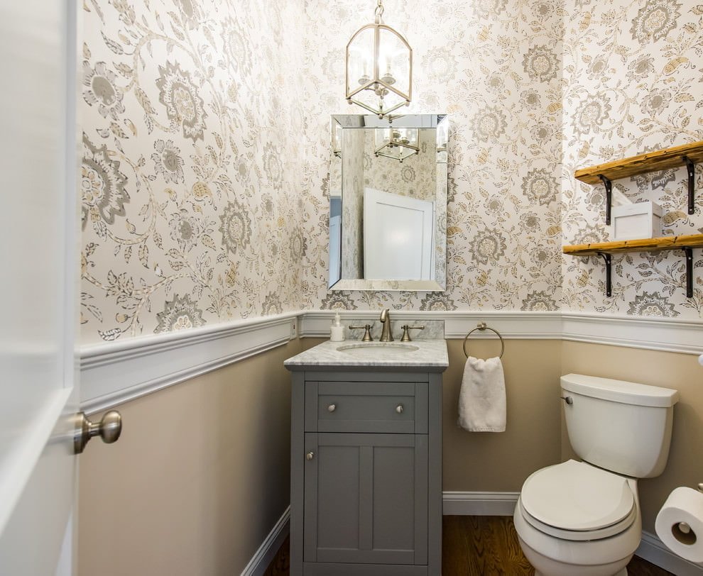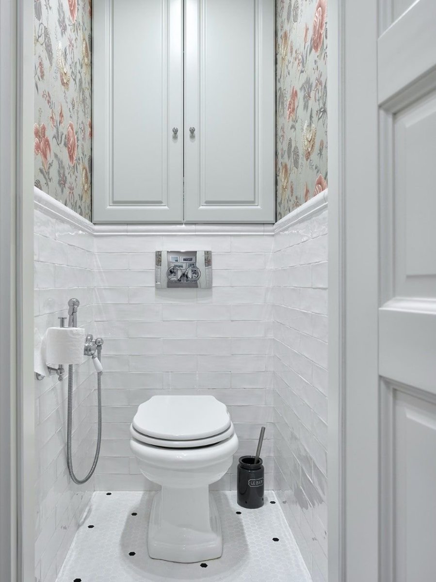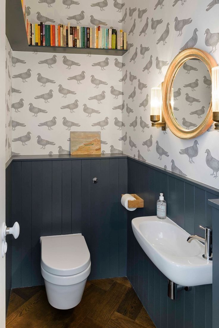 Интерьер туалета маленького с обоями