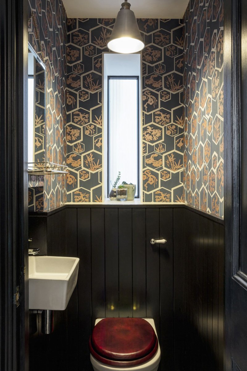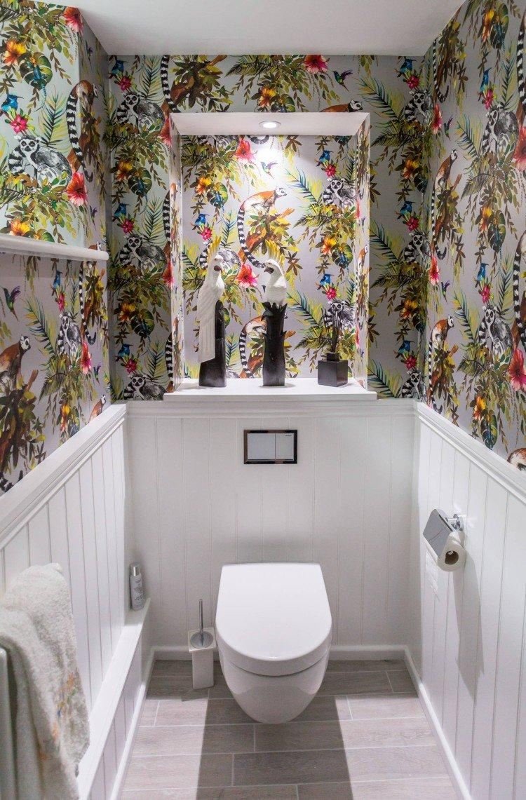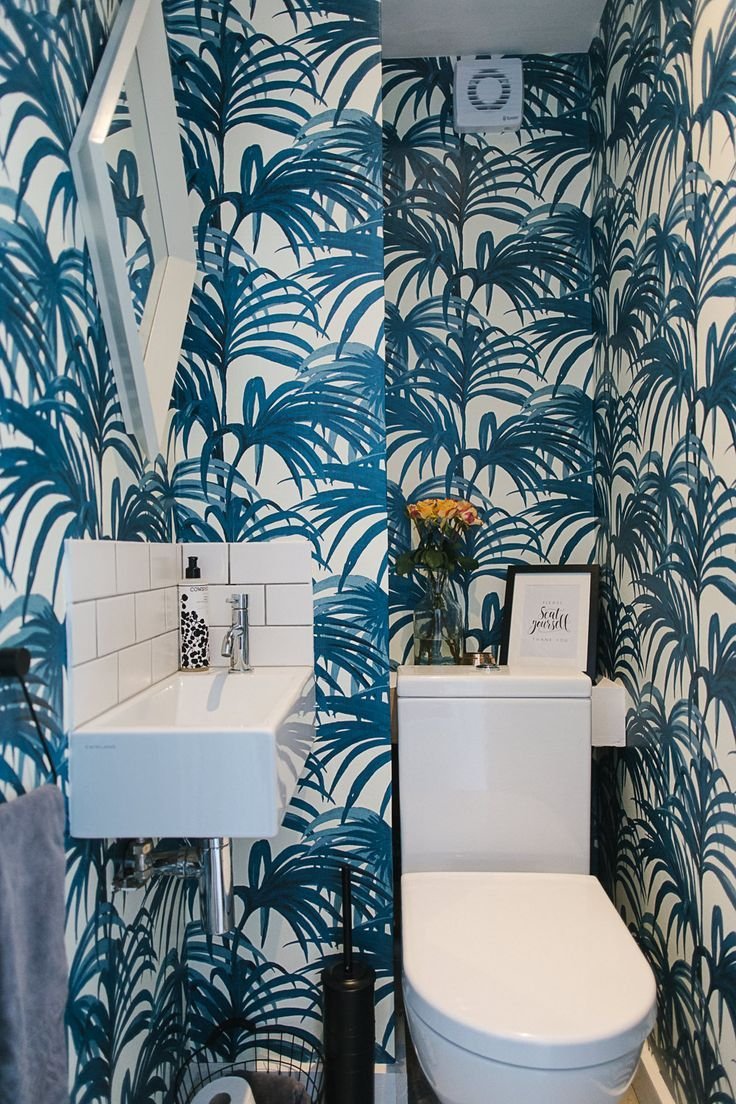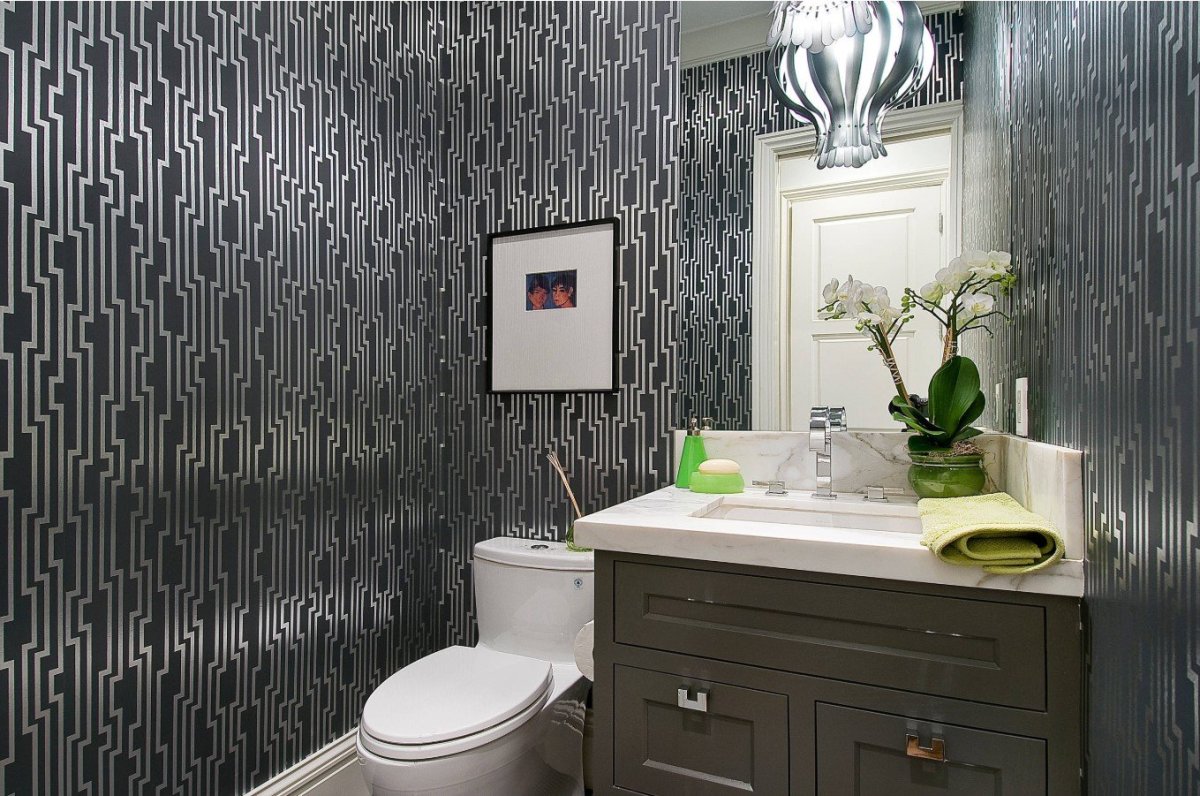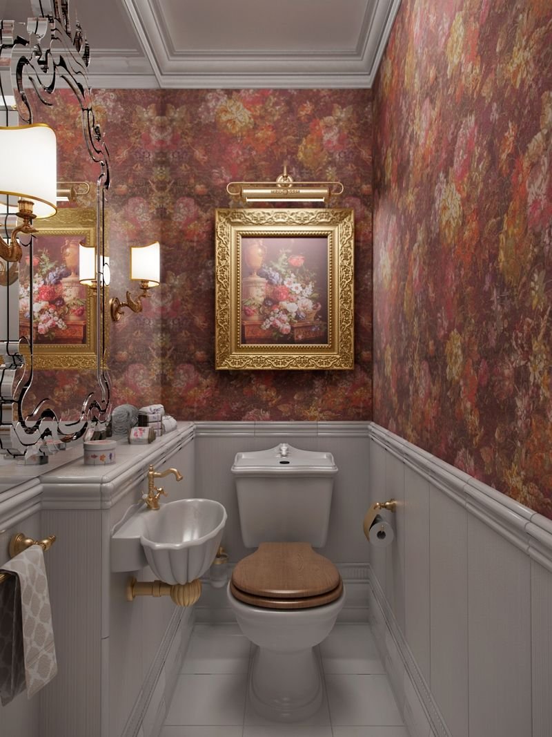 Интерьер туалета с обоями
