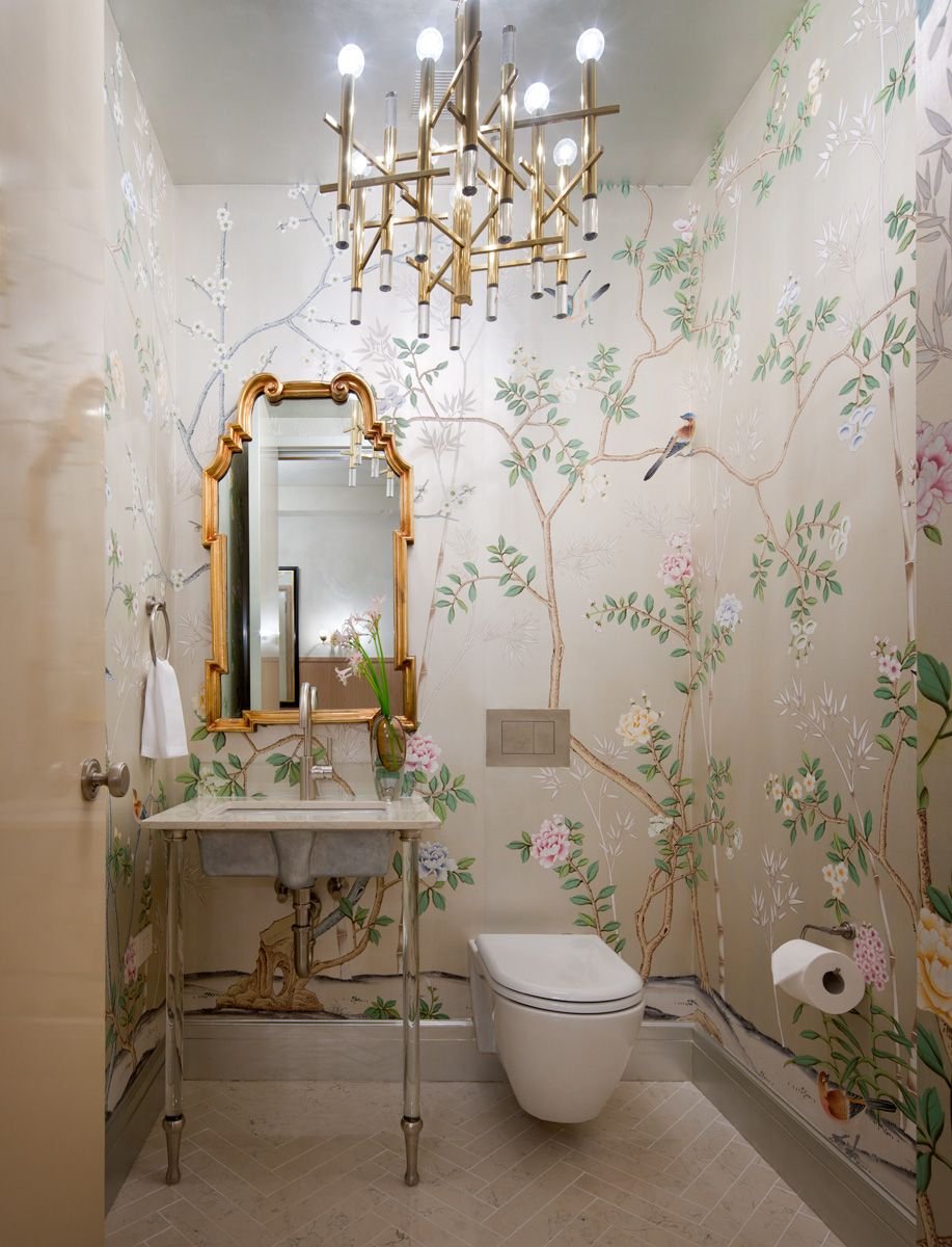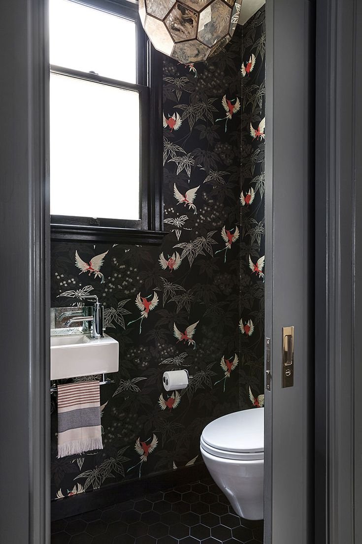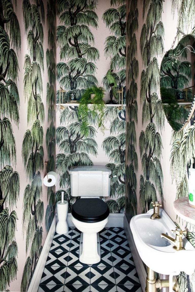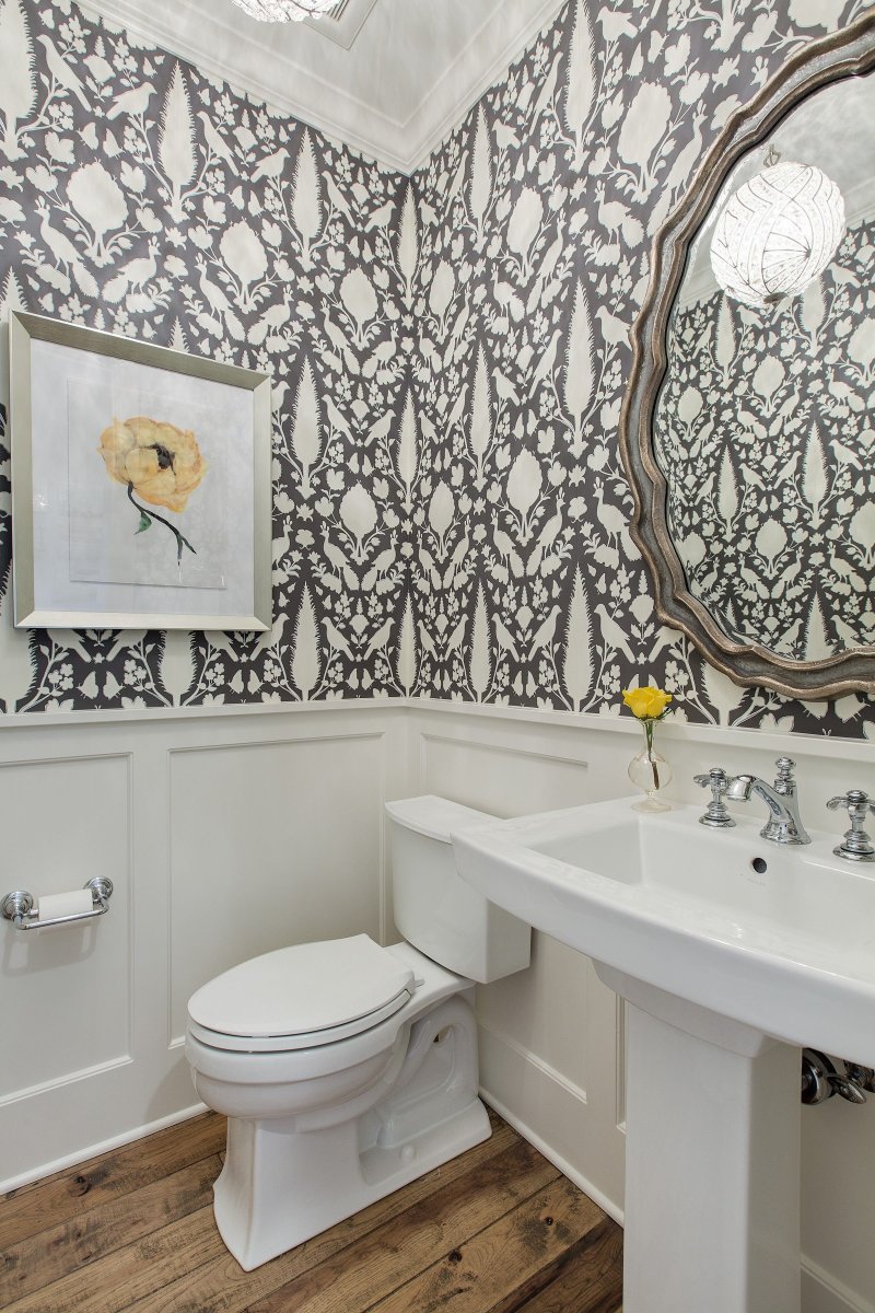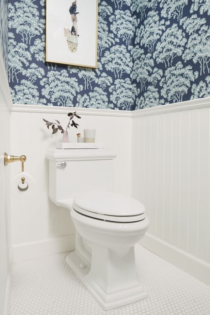 Интерьер туалета с обоями