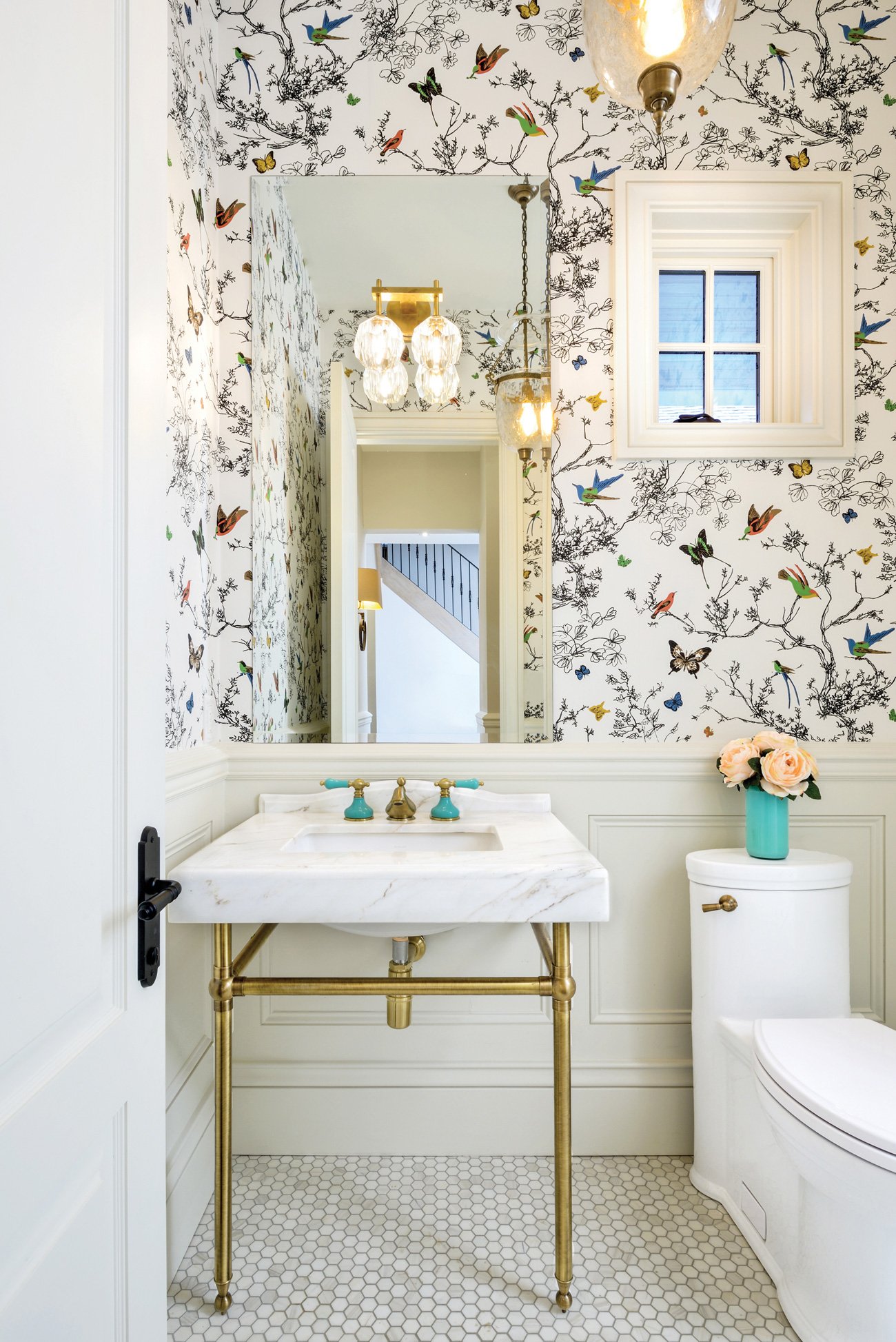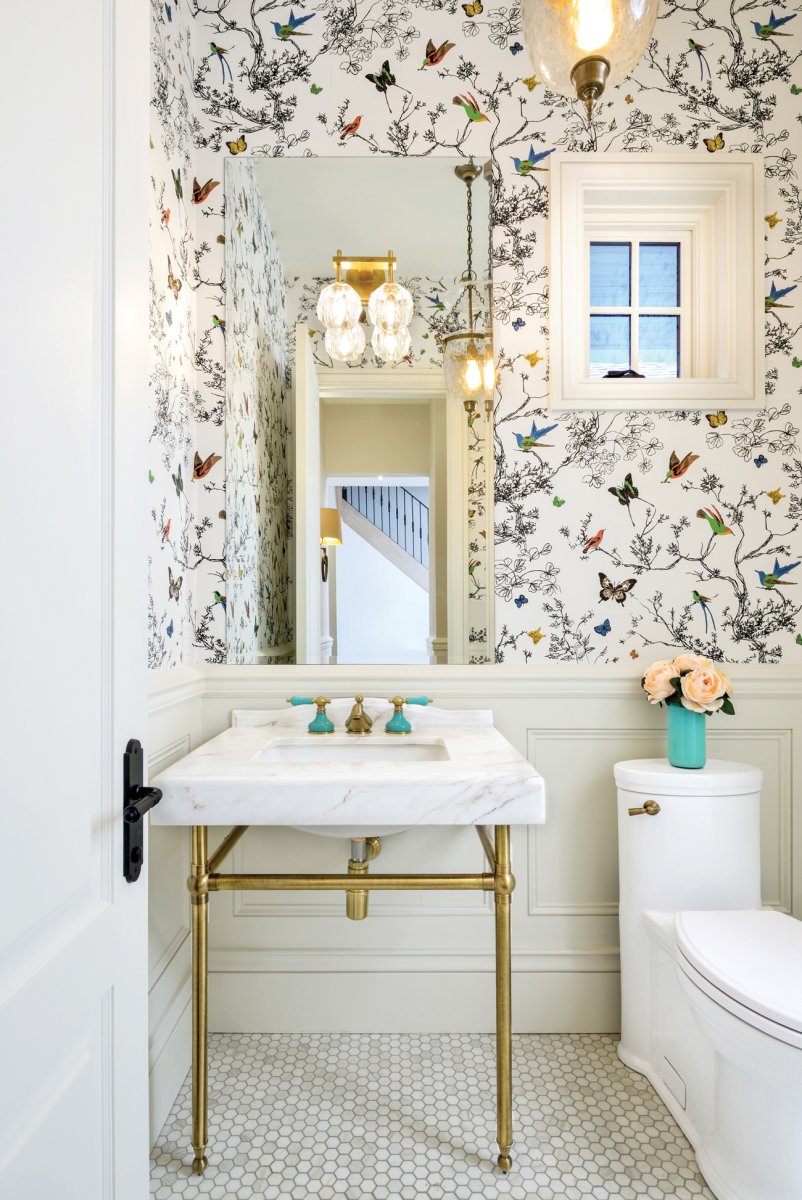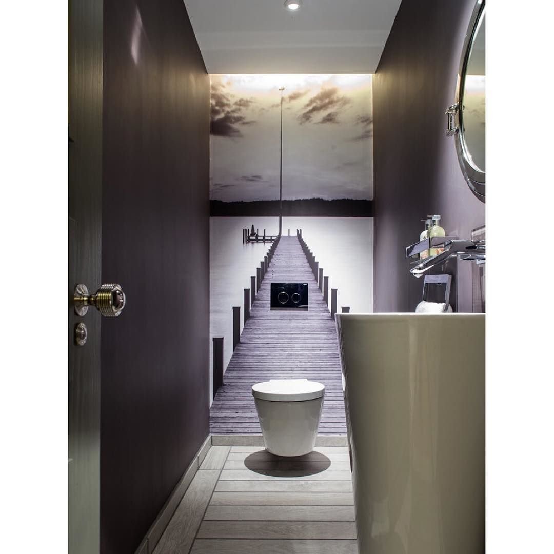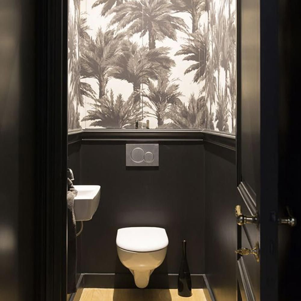 Интерьер туалета с обоями