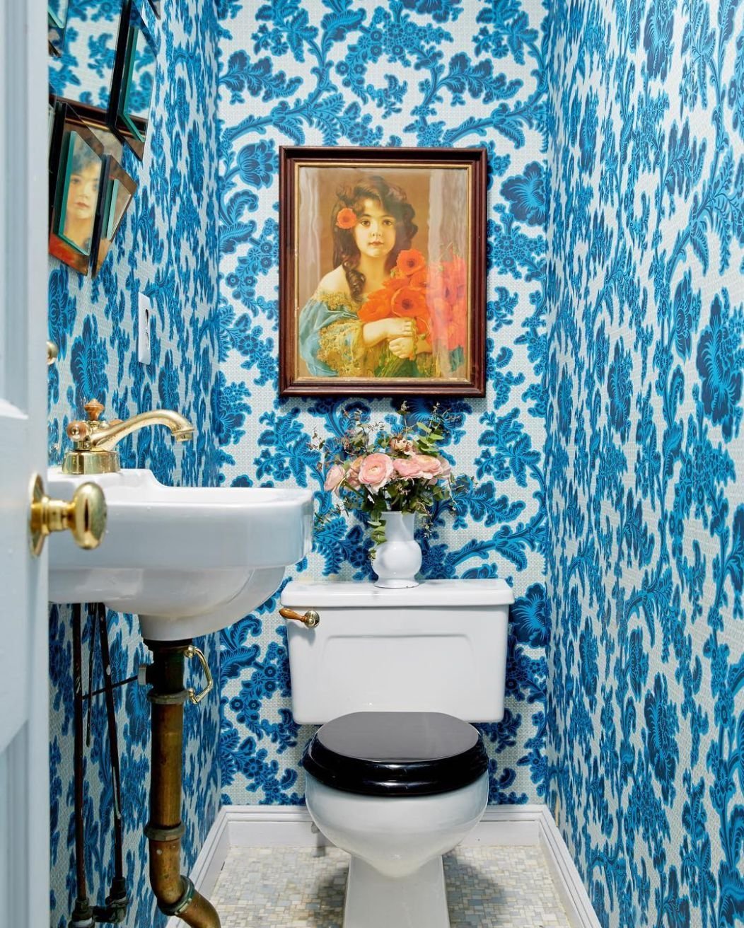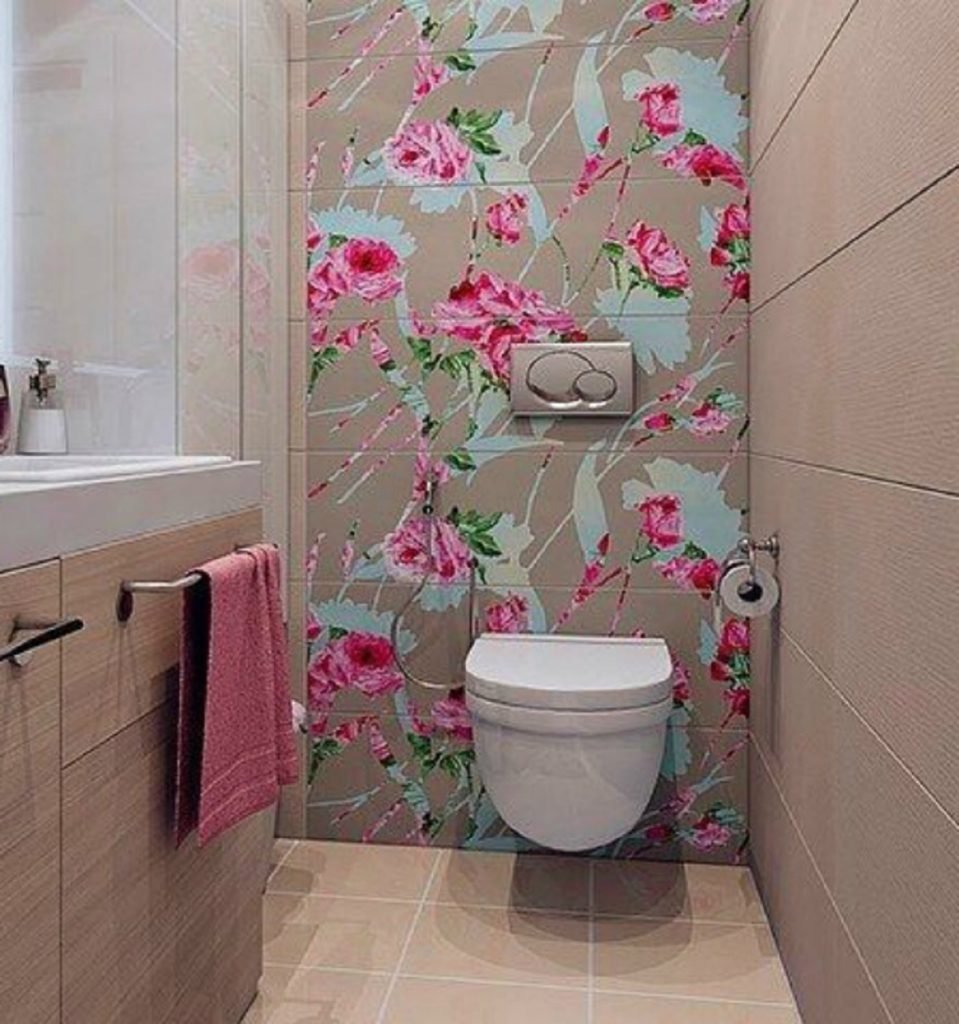 Цветочный принт в оформлении туалета