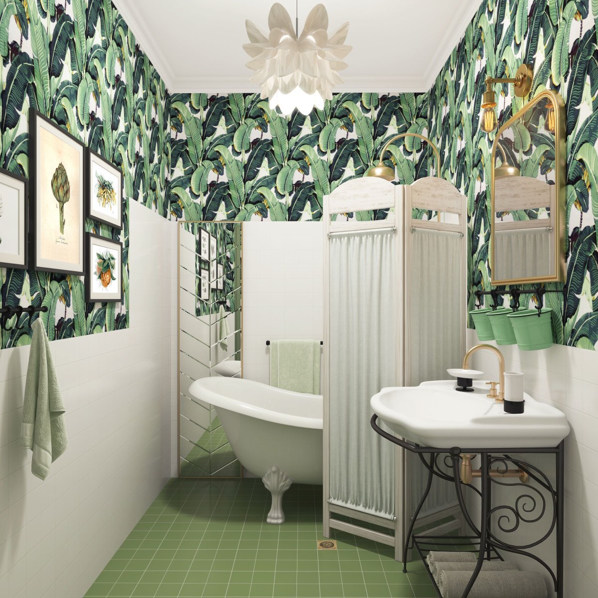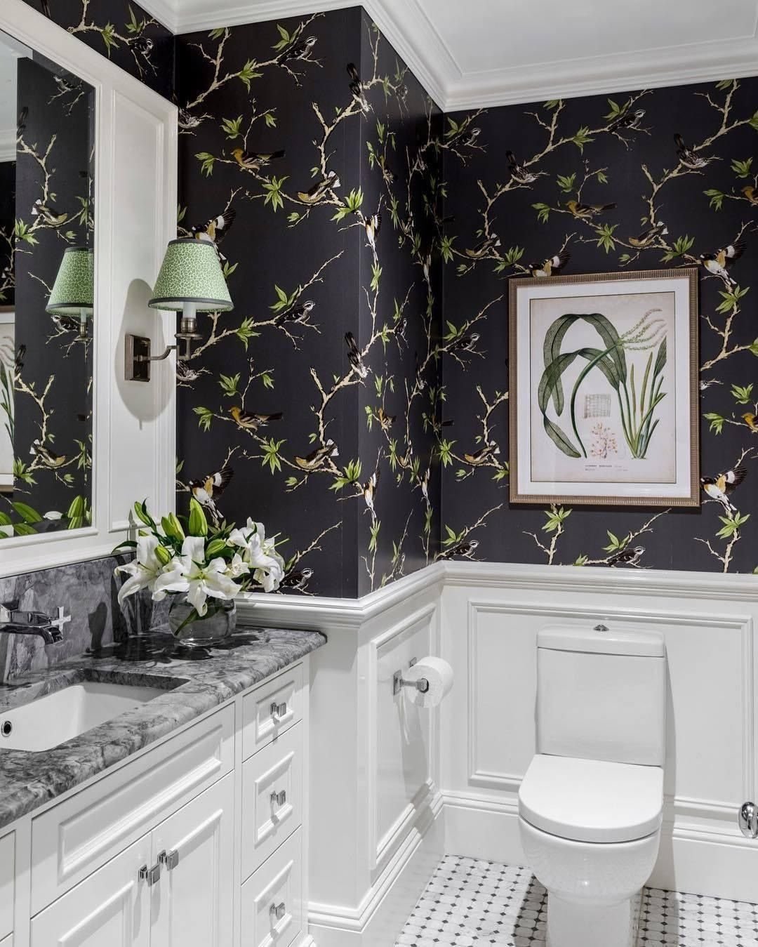 Санузел с растительным принтом