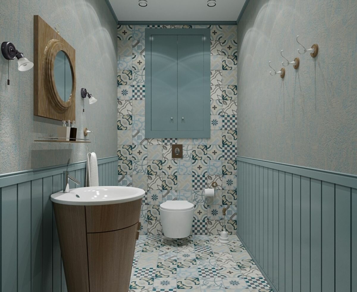 Туалет комбинация плитки и обоев