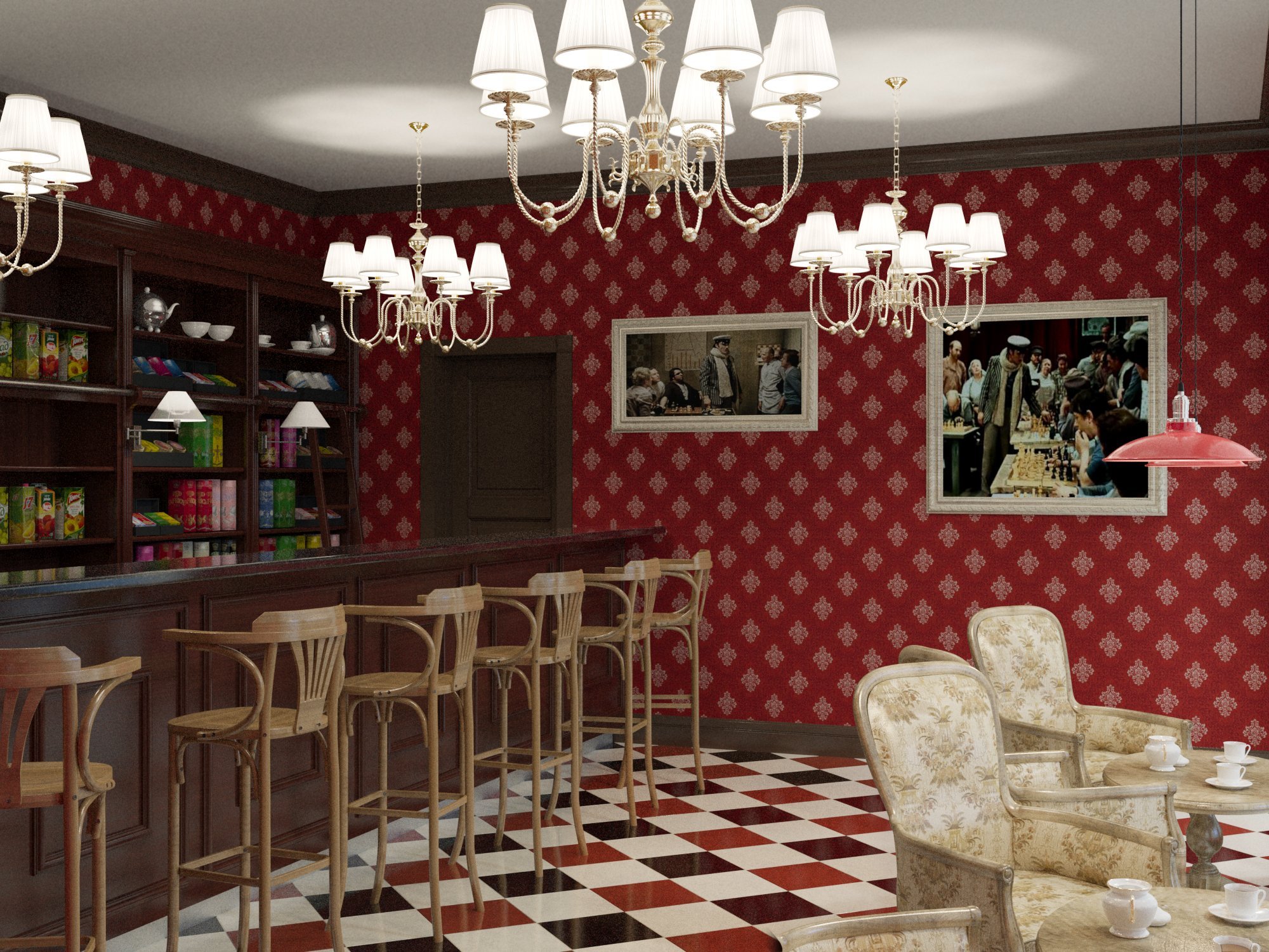 Кафе в стиле шахмат интерьер