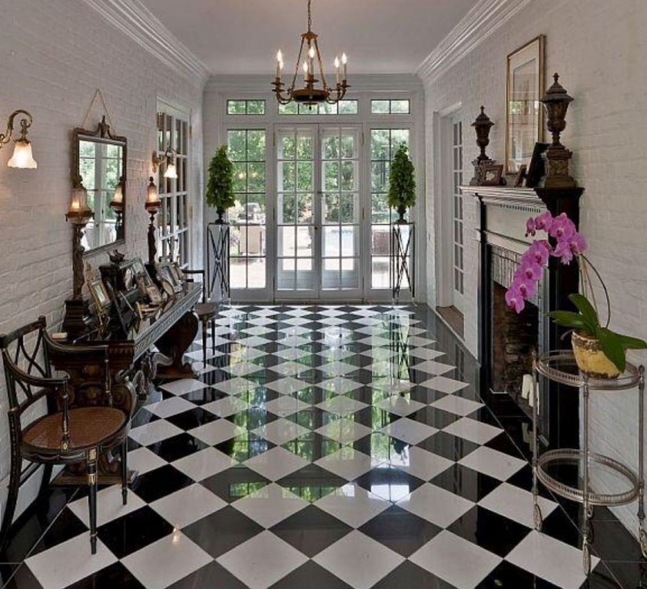 Шахматный пол в интерьере