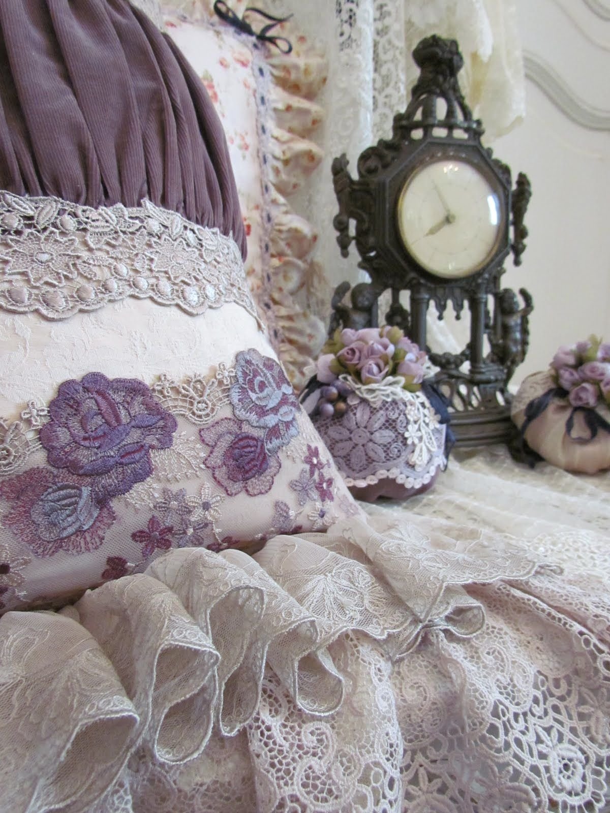 Подушки украшенные кружевом