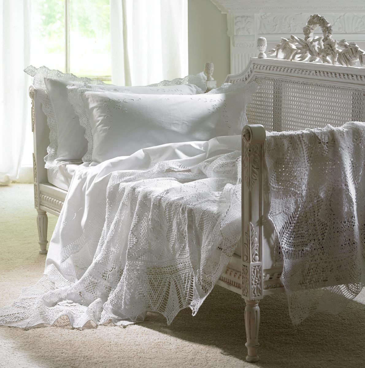 Кружево в интерьере спальни