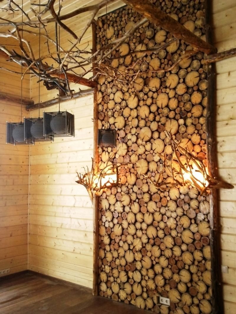 Необычная отделка стен деревом