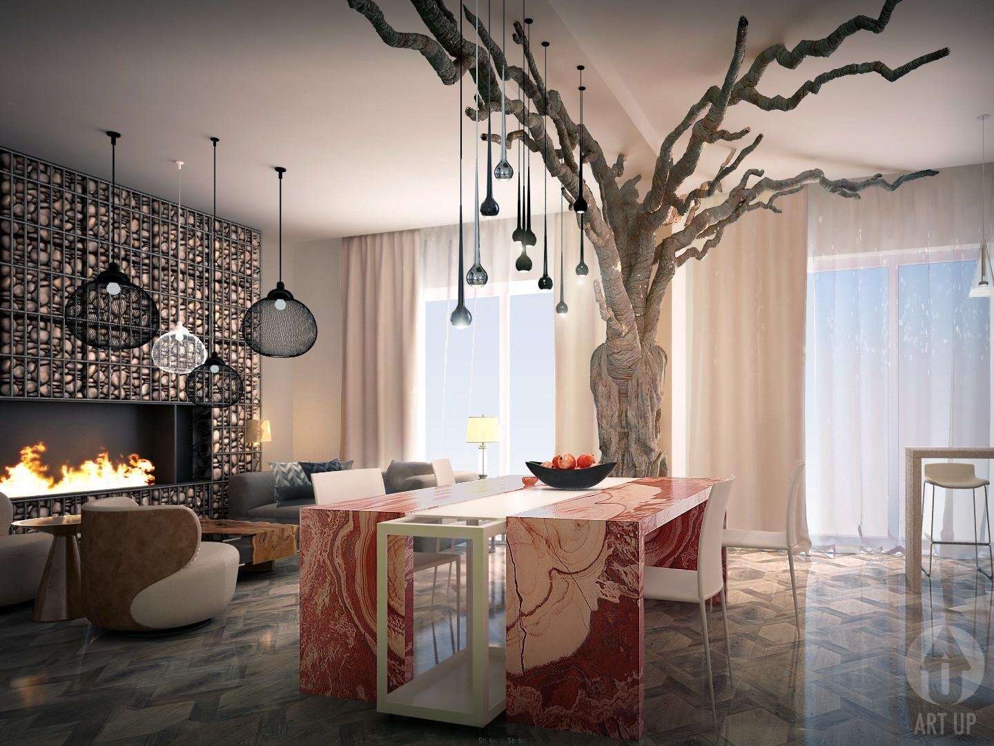 Объемное дерево в интерьере