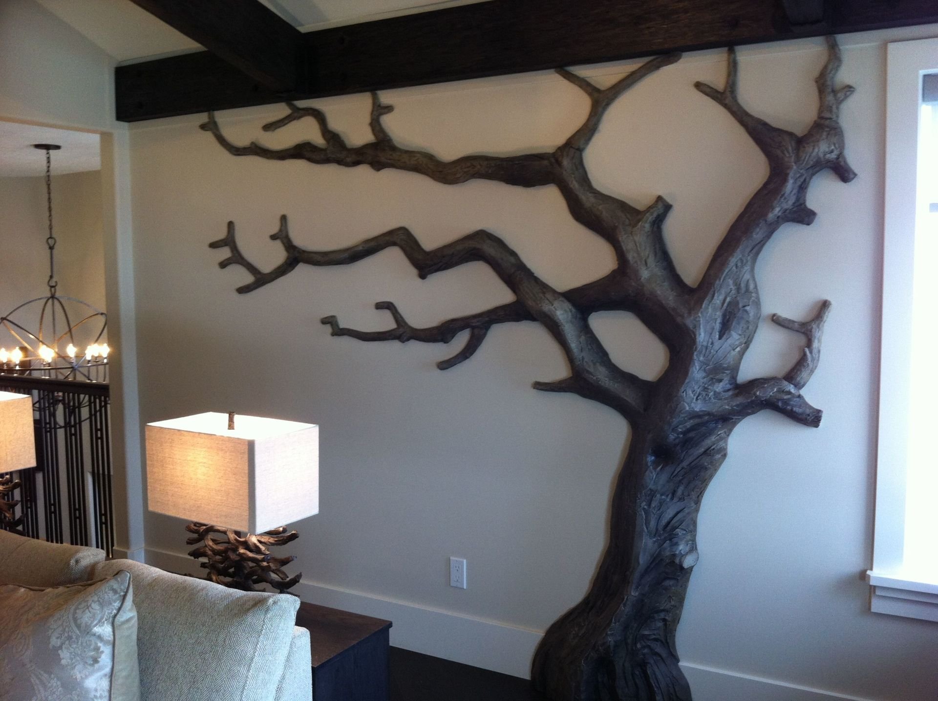 Дерево на стене в интерьере
