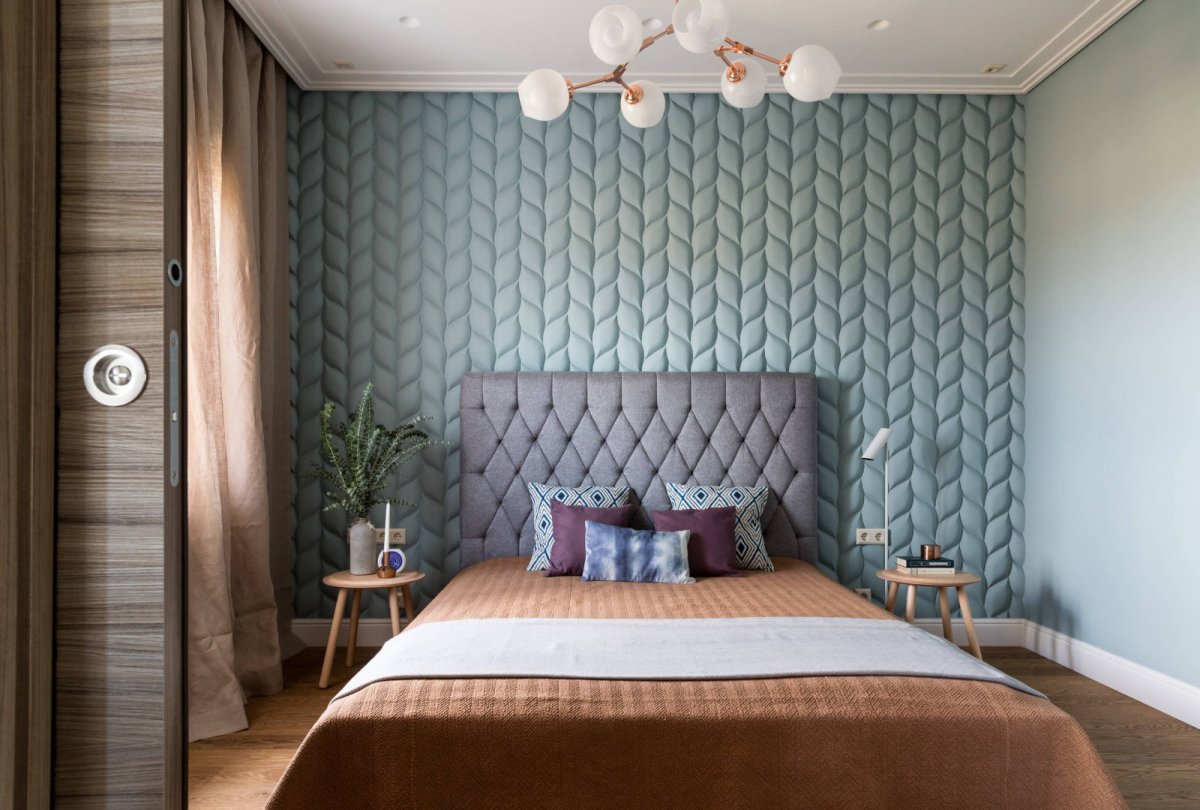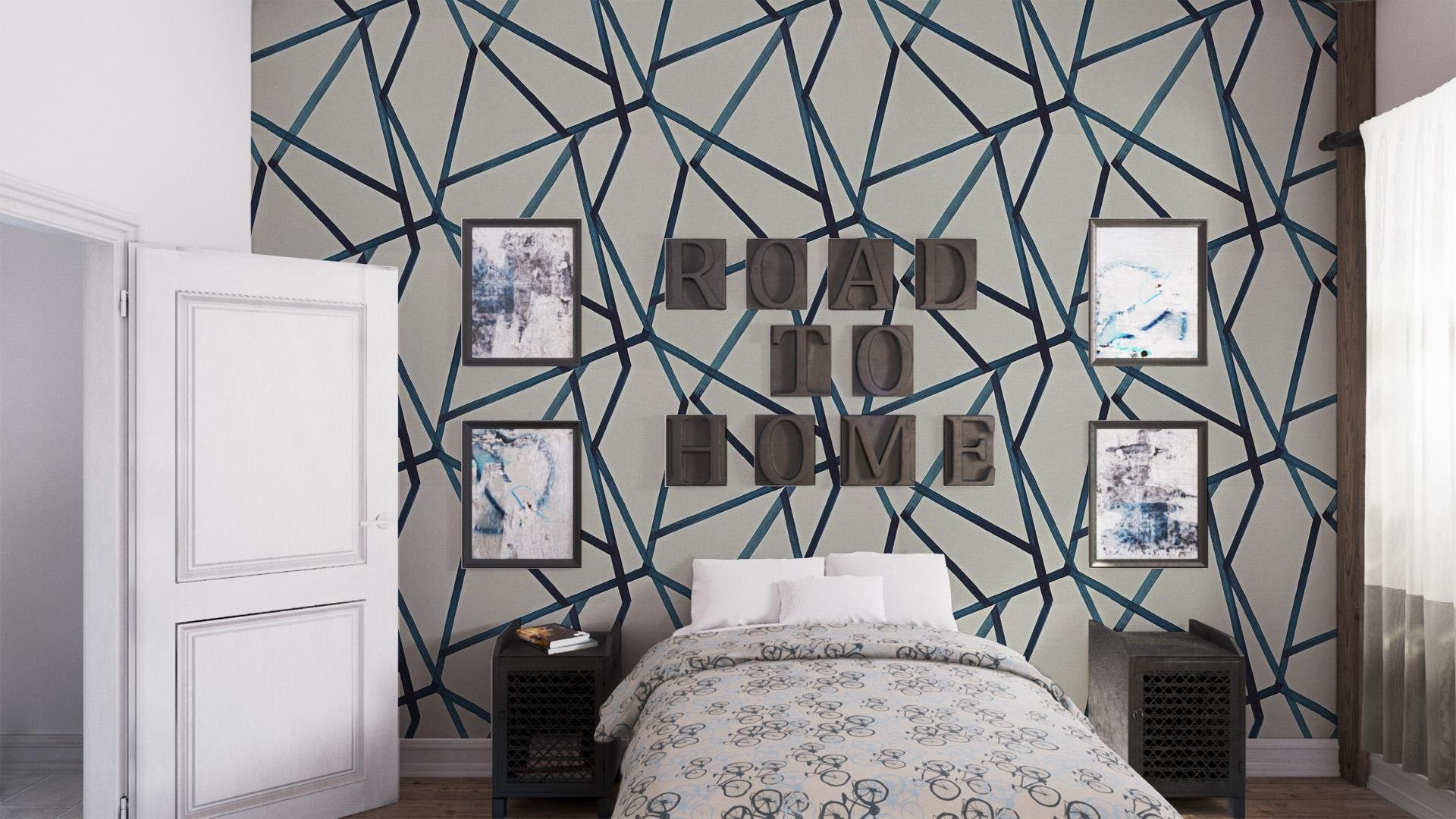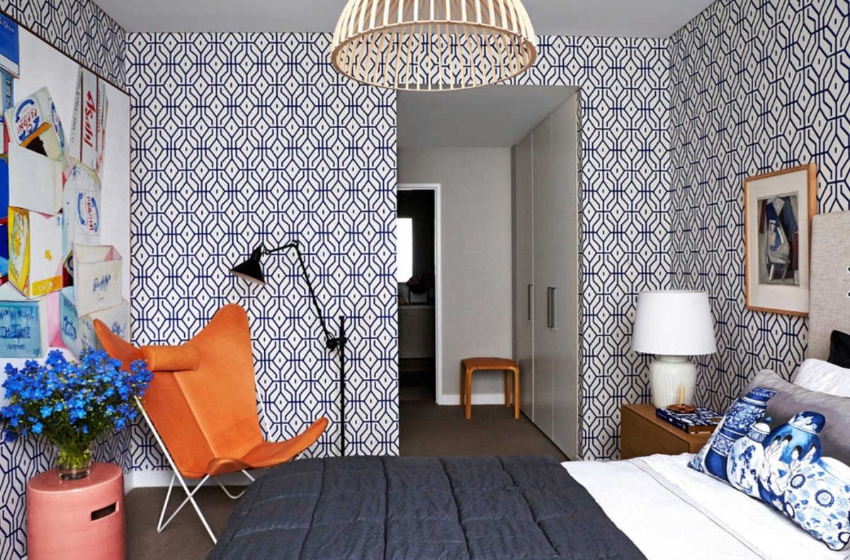 Спальня с геометрическими обоями