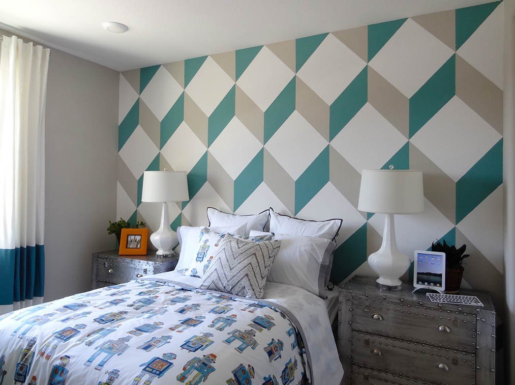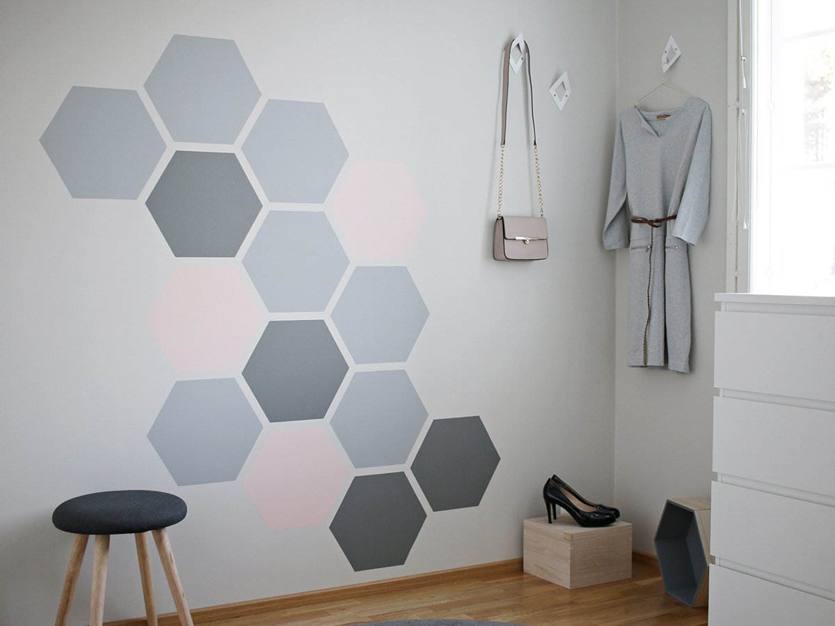 Покраска стены геометрическими фигурами