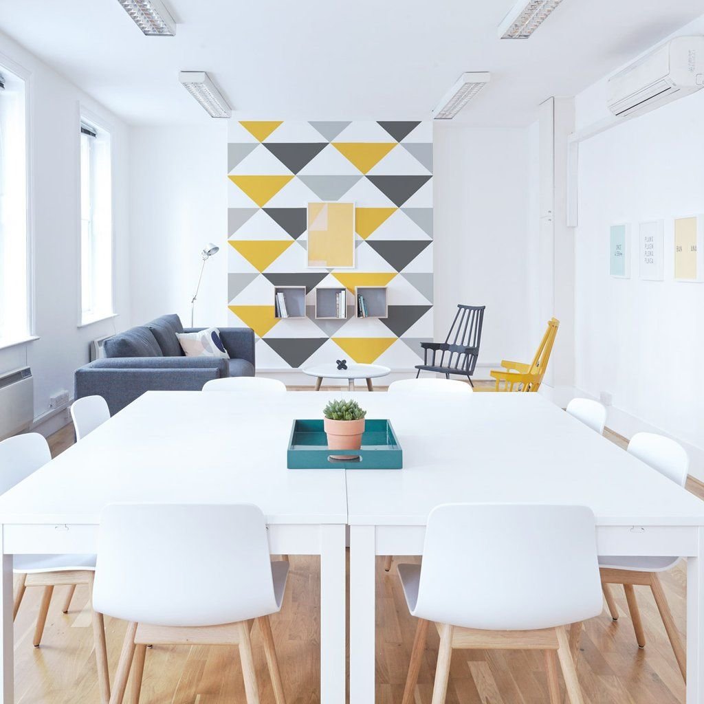 Геометрические треугольники на стене в интерьере