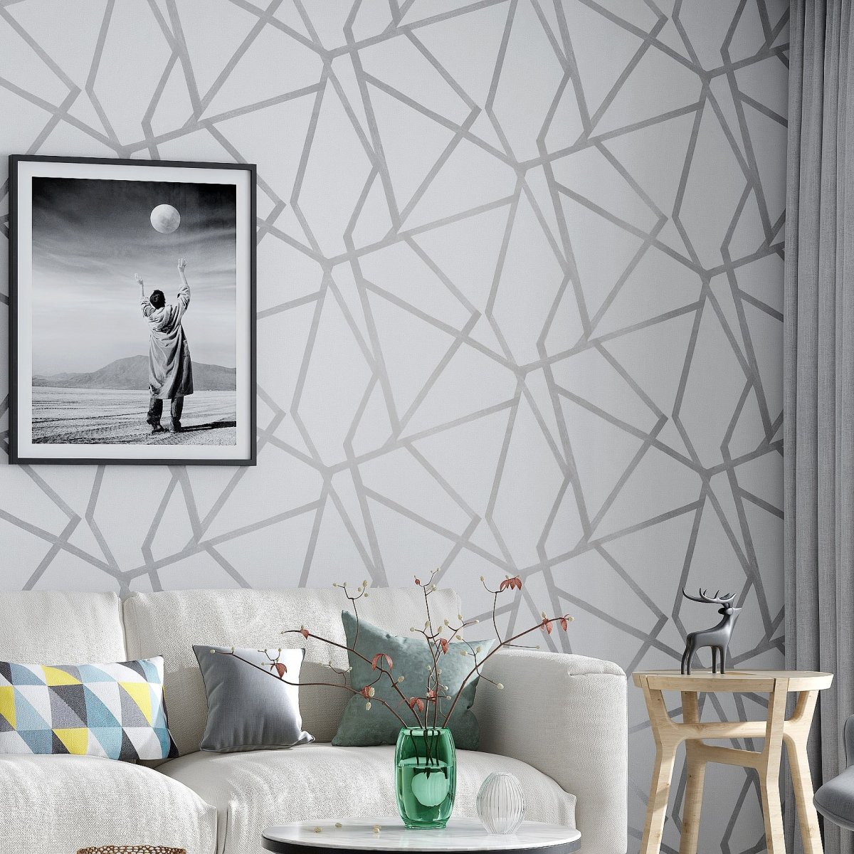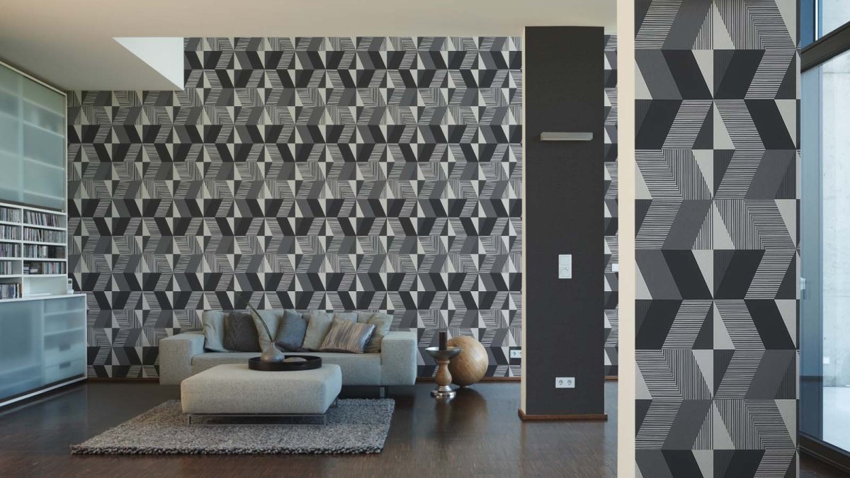 Серые обои геометрия в интерьере