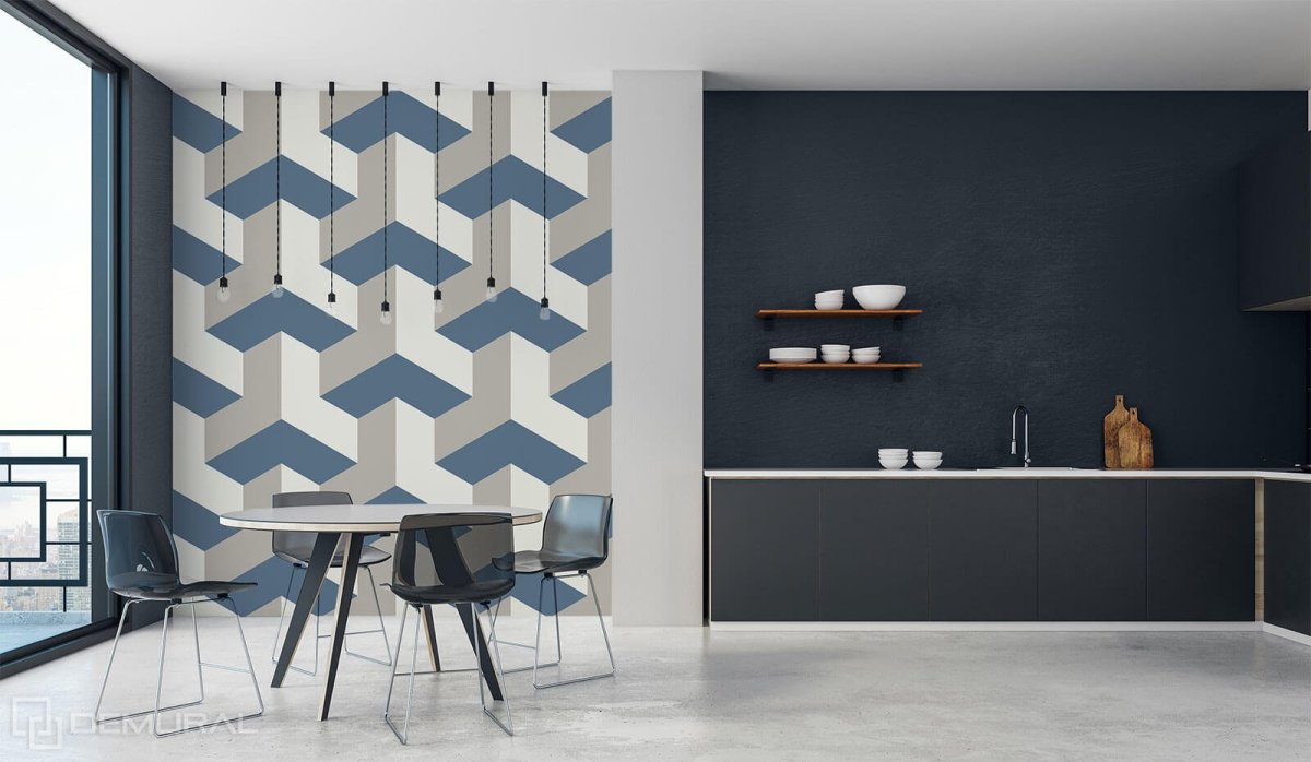 Обои с геометрическим рисунком в интерьере кухни