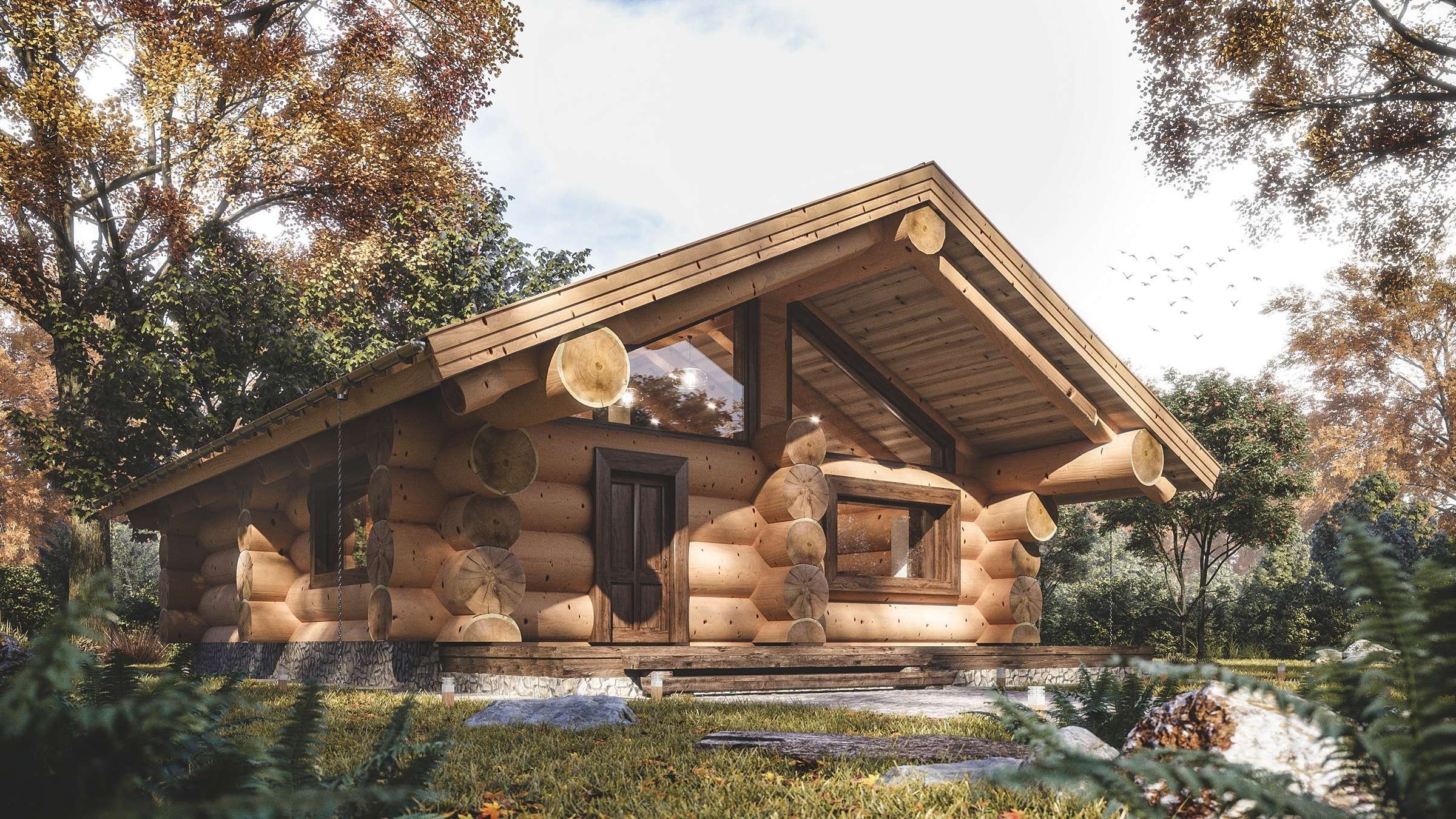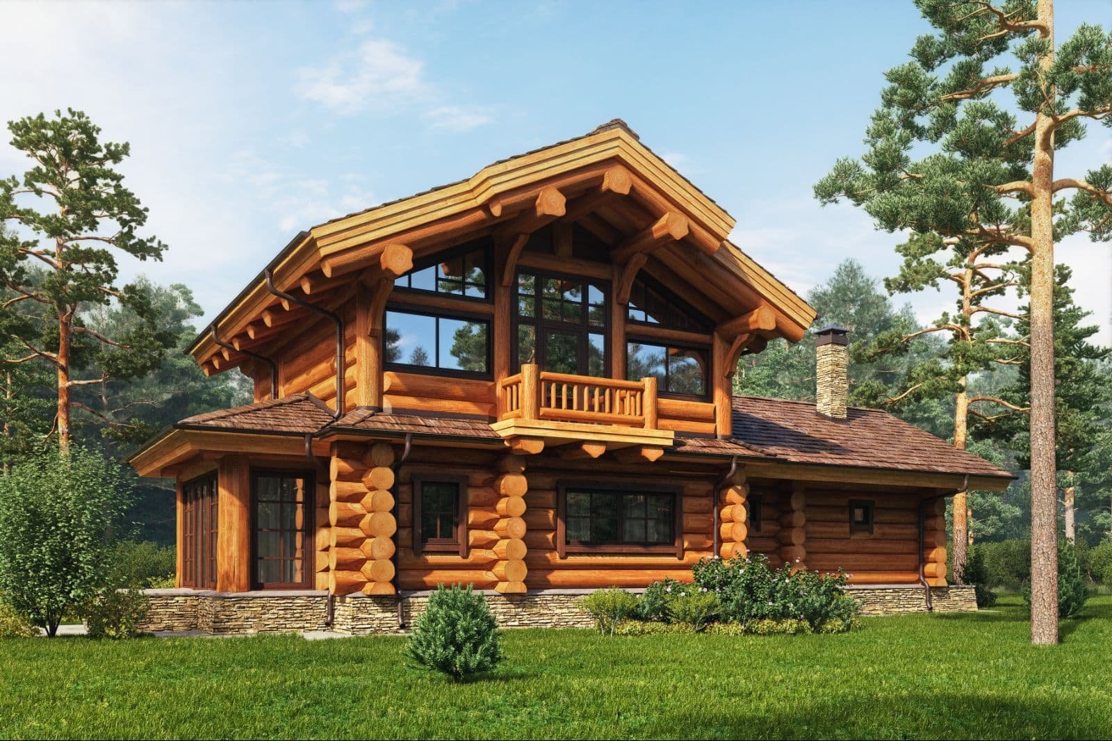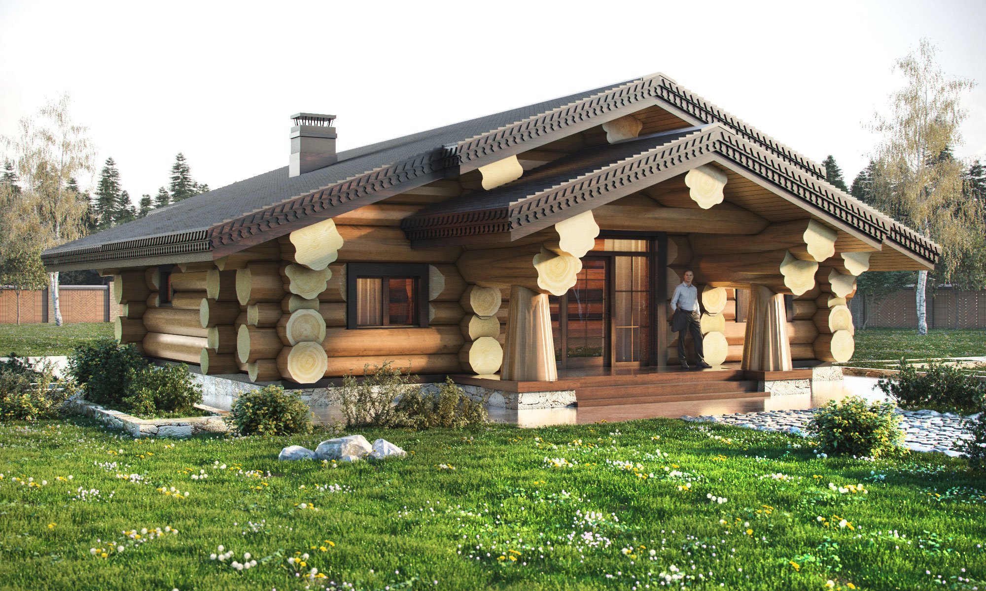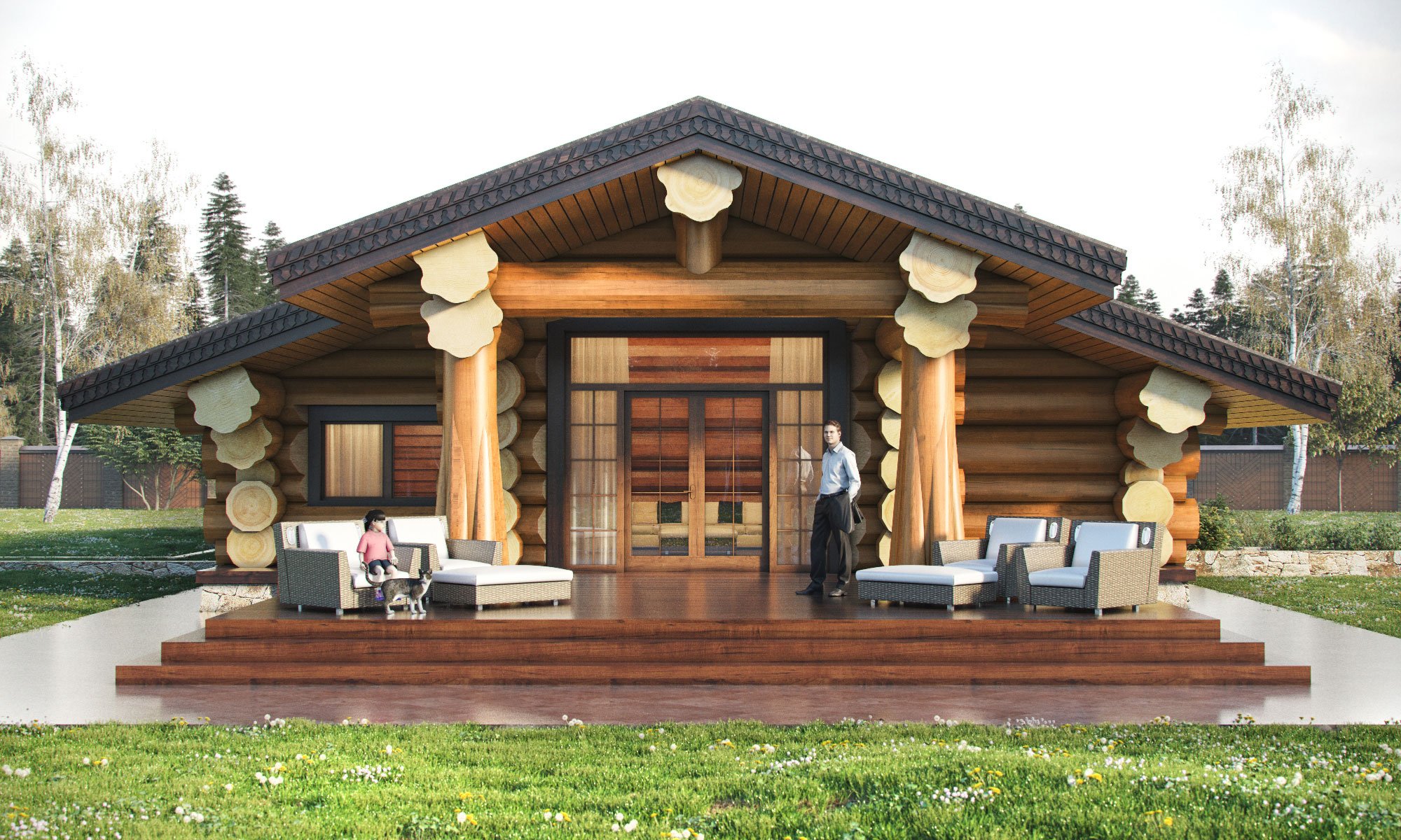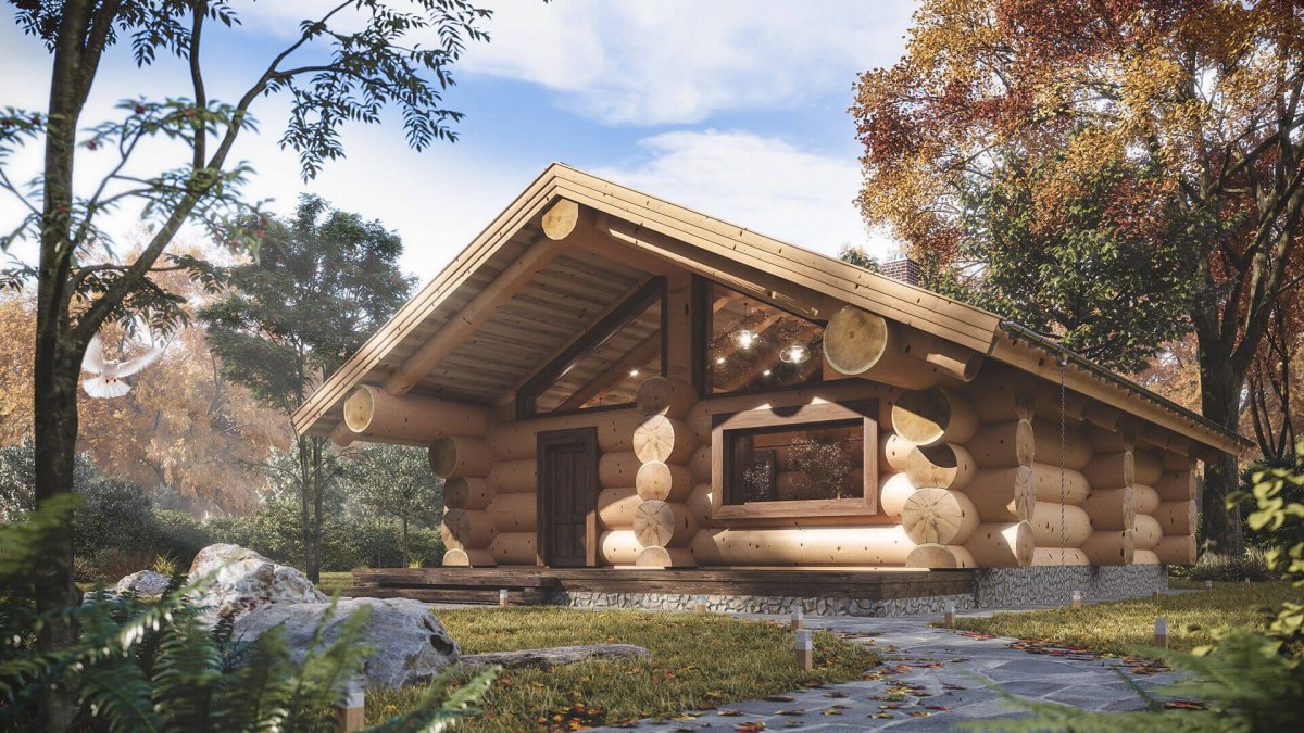 Дом из бревна с большими окнами