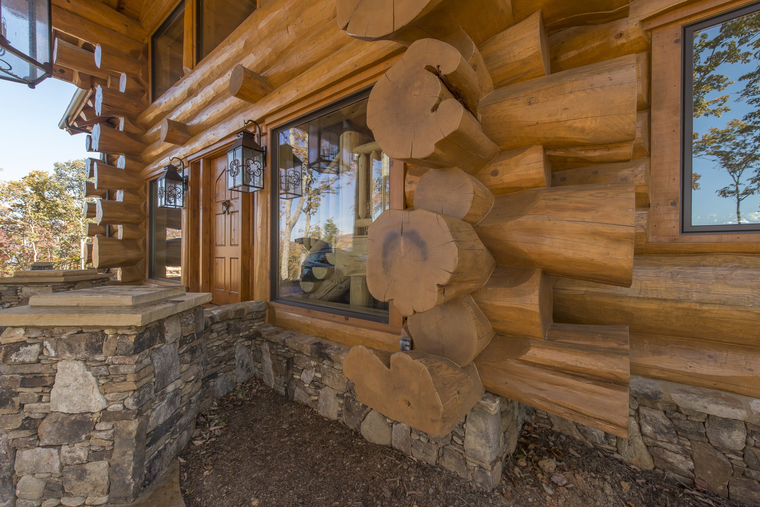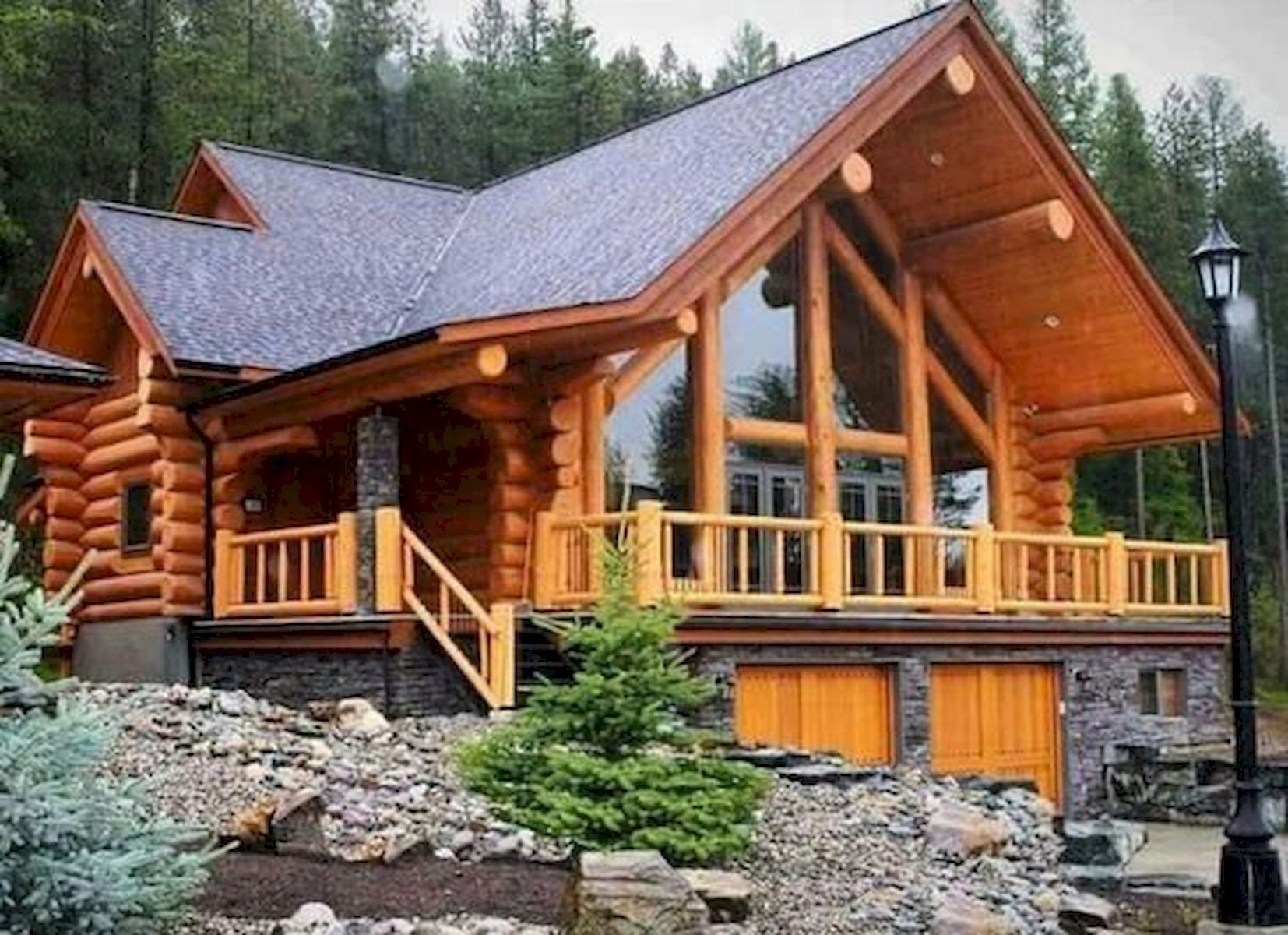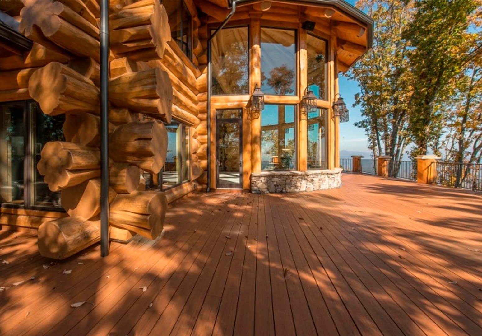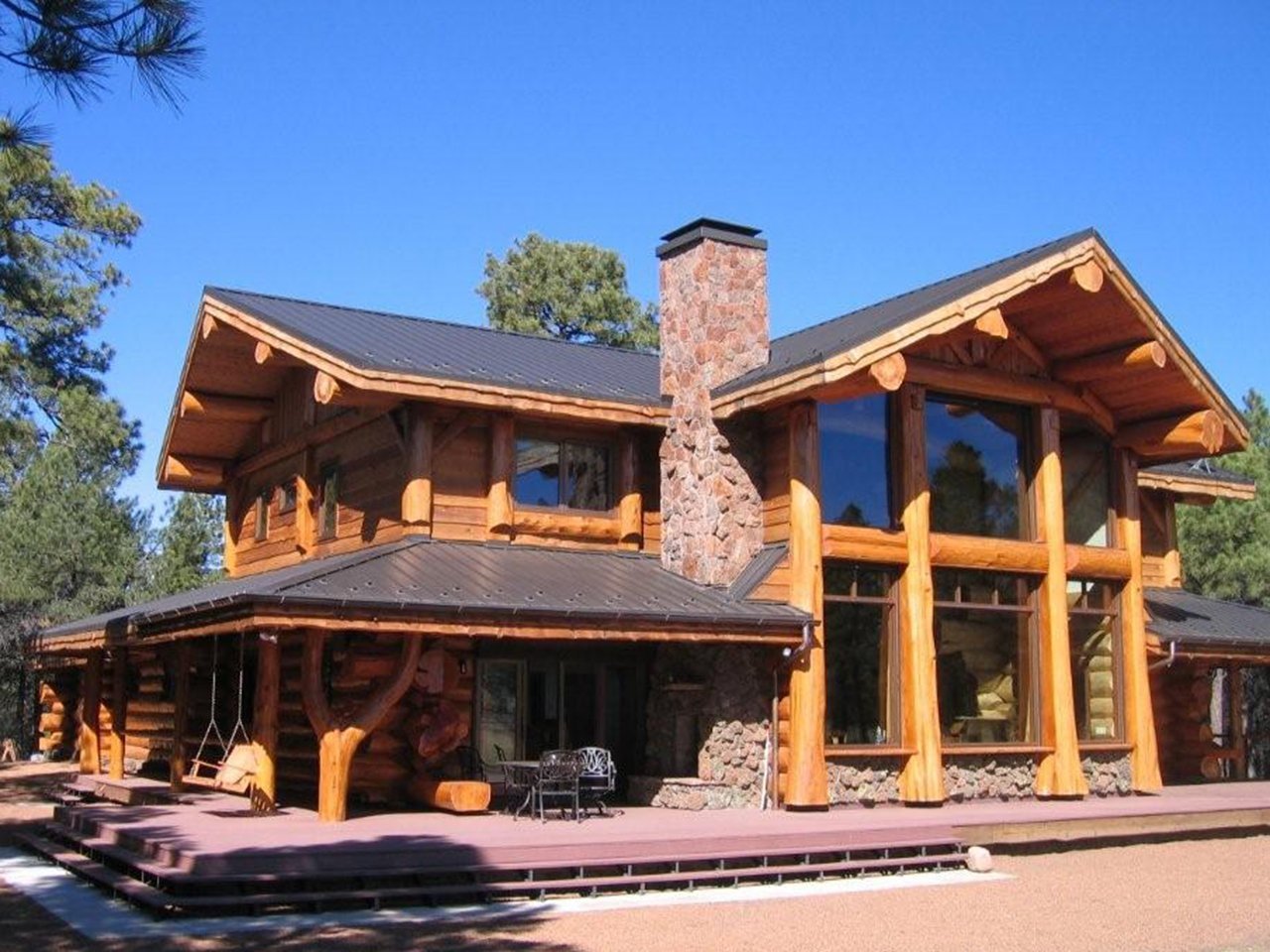 Дом из бревна с большими окнами