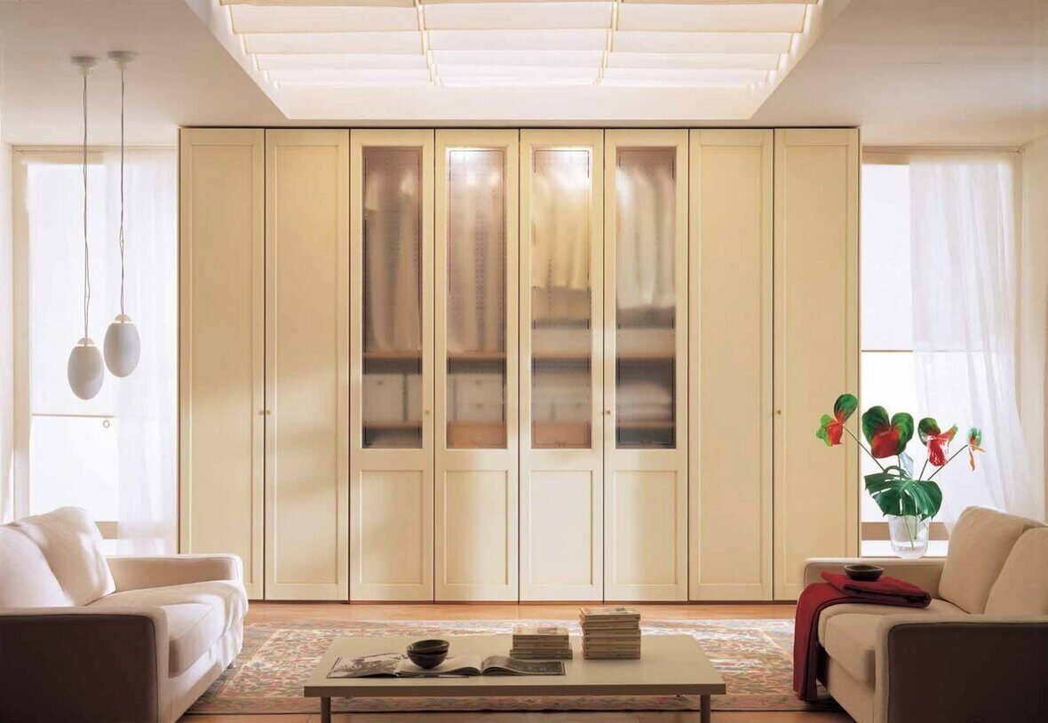 Шкаф распашной в интерьере гостиной